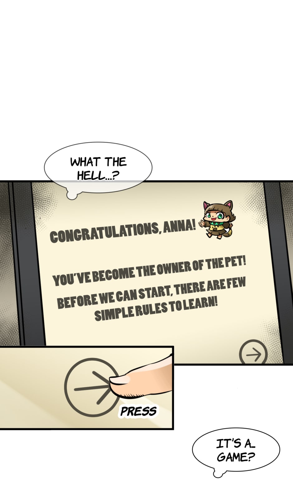 Anna knows everything about happiness. Why wouldn't she if she's spending every day of her life pursuing all sorts of pleasures? One day Anna comes across a game that looks like a typical "tamagotchi" where the player has to look after a pet. But it turns out that this pet is a living person. A girl.
