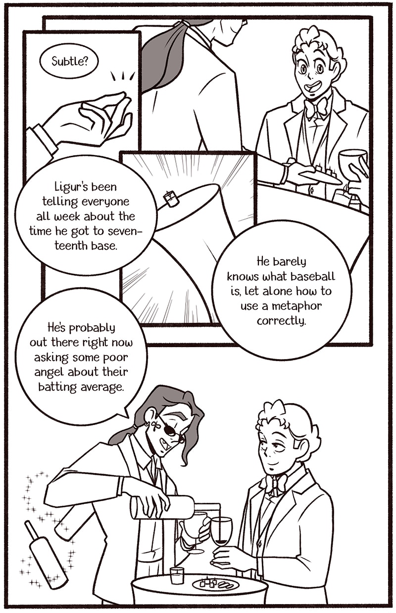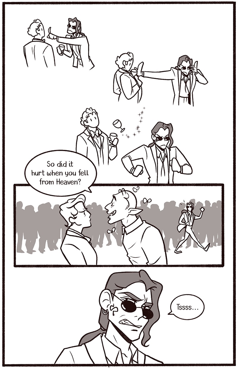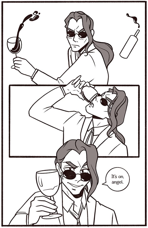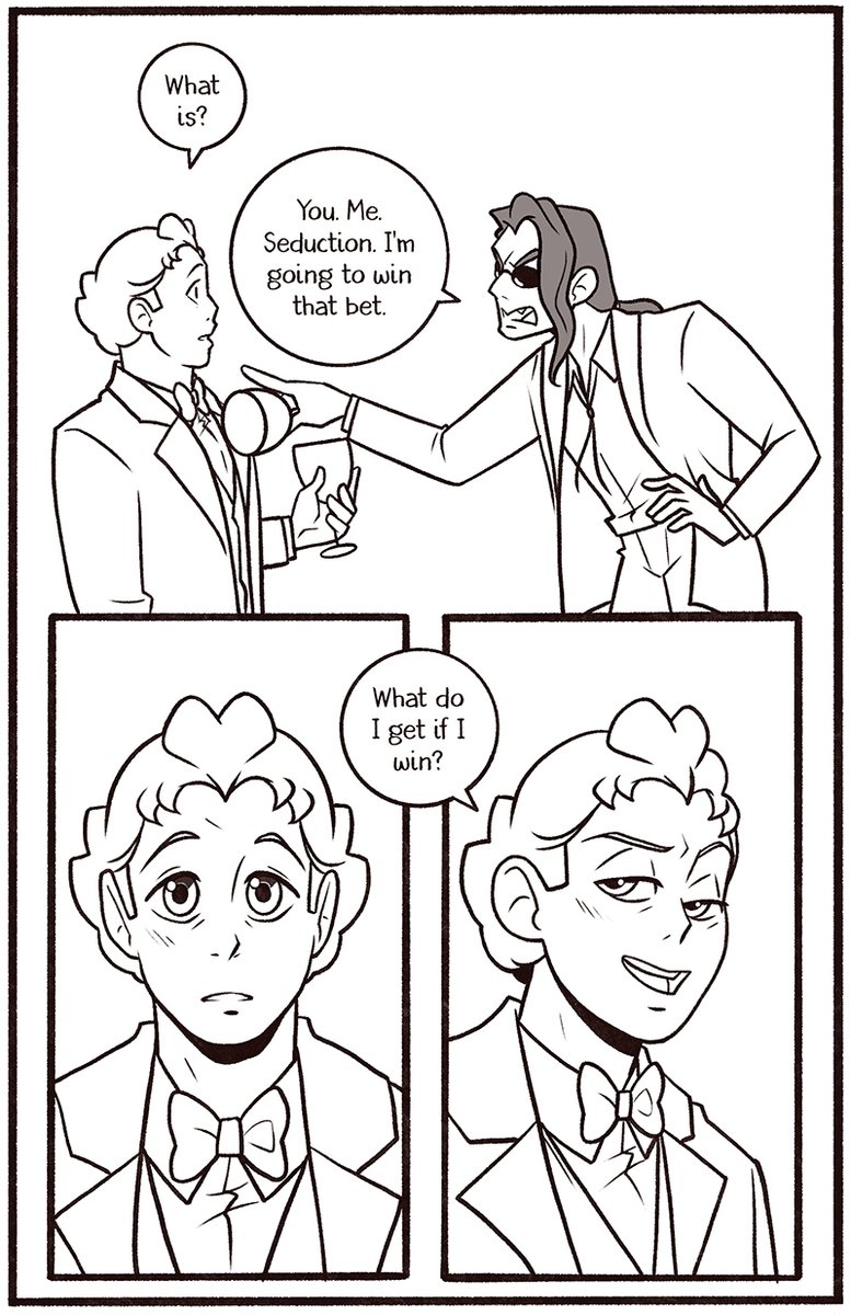 Welcome to my newest Good Omens comic One Night in Bangor (And the World’s Your Oyster). The explicit fic is written by Atalan, which you can read here: https://archiveofourown.org/works/20053450?view_adult=true.