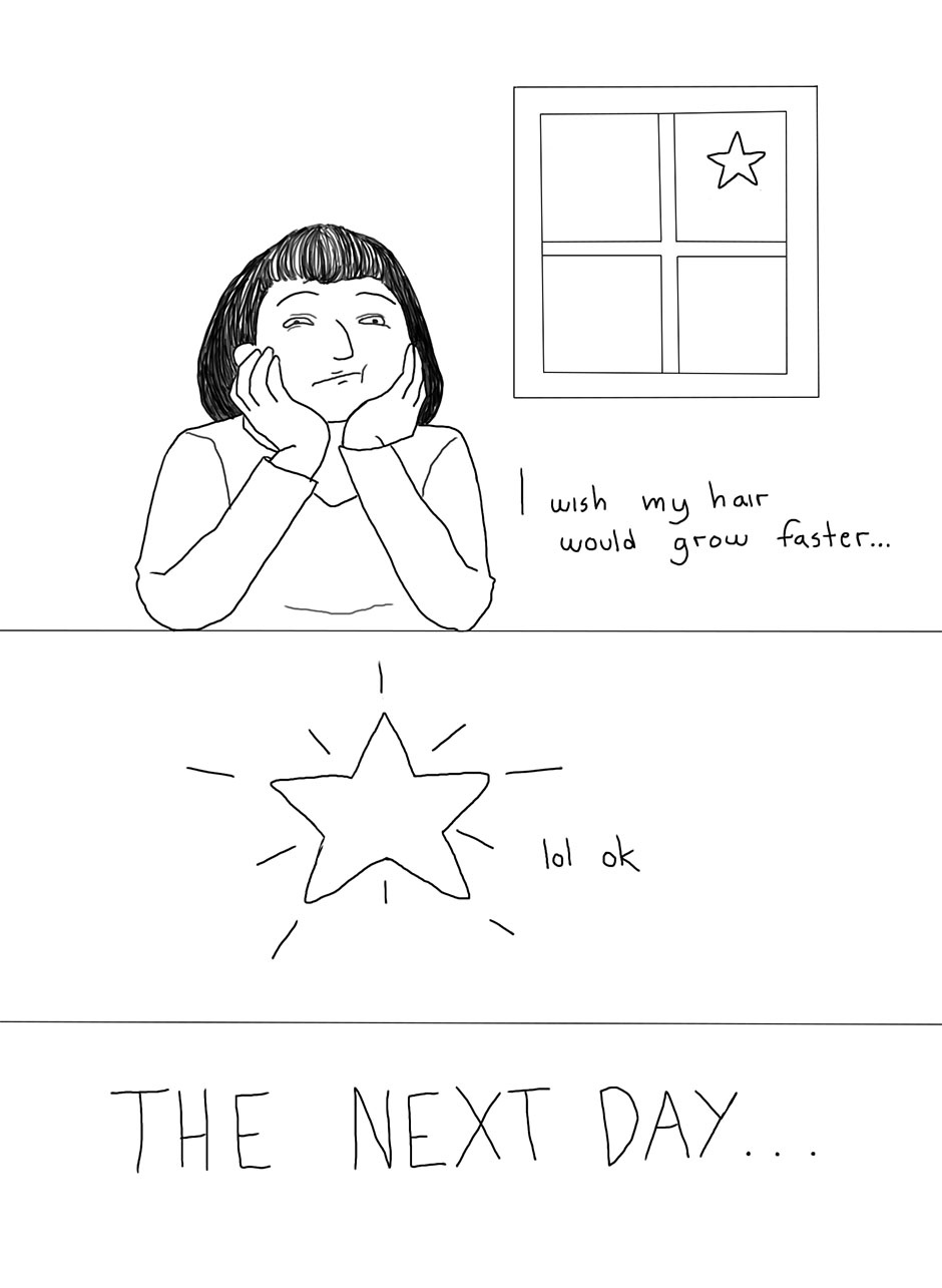 an impatient woman wishes for her hair to grow faster, she gets her wish - but not quite in the way she wanted.