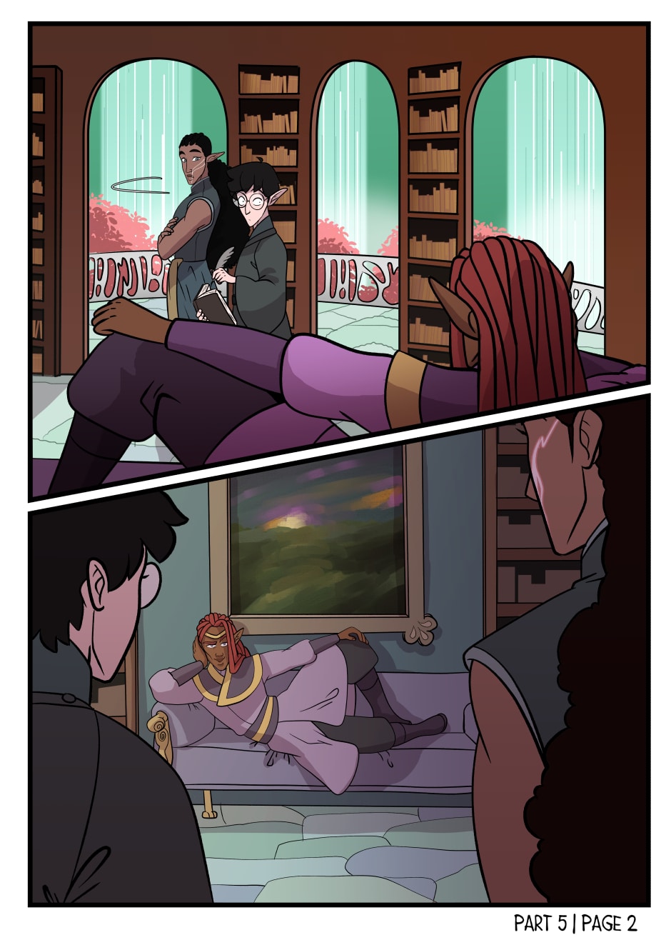 Page 2 of Part/Chapter 5! What could Lord Gil-Galad be up to ... 🤔 (Also pls ignore the fact that I accidentally drew Elrond with human ears in the second panel 🤡 lol)