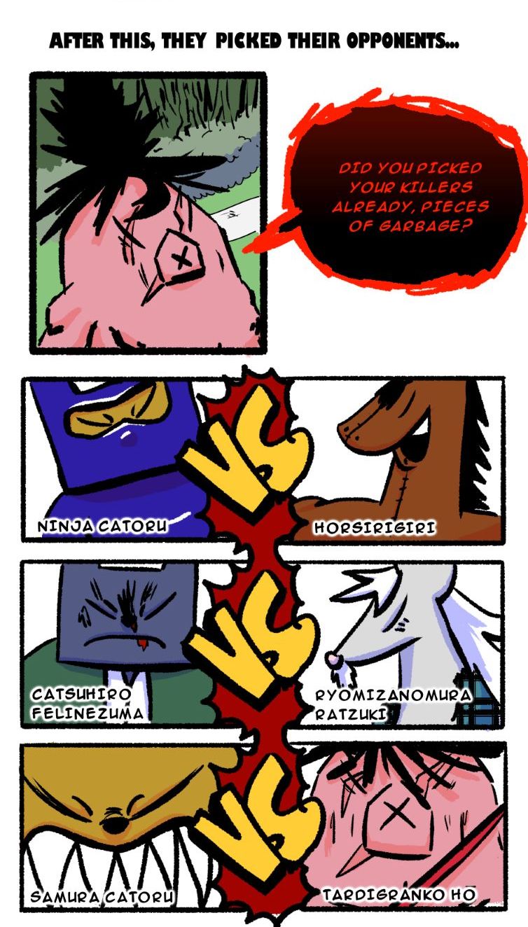 THE BATTLE STARTS YEAAAAAAAAH!!!!! Subscribe so you don´t miss the exciting next episodes! Btw, I´m gonna start scheduling my uploads. Every monday, you will have a new Samurai Cat chapter. Nice, right? Thanks for reading!