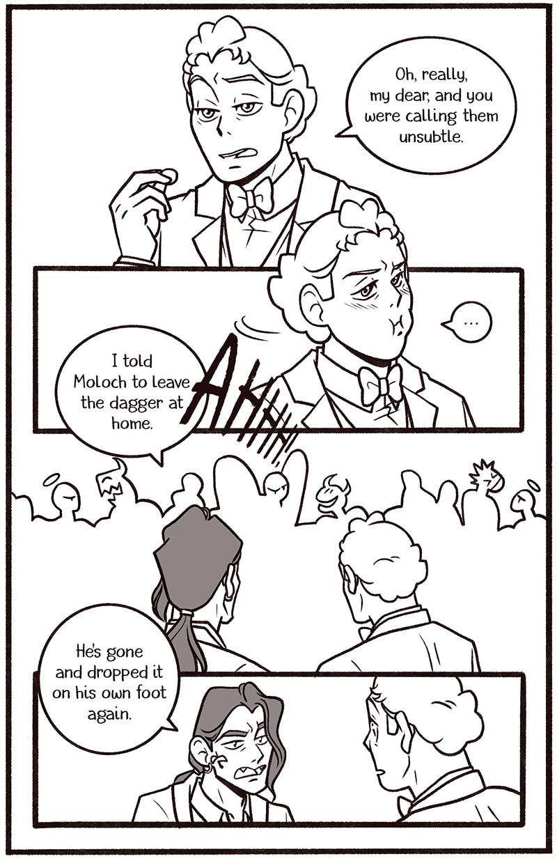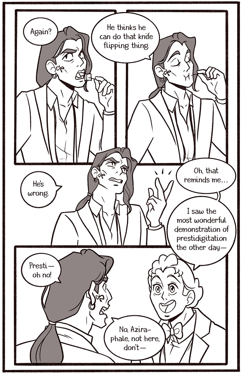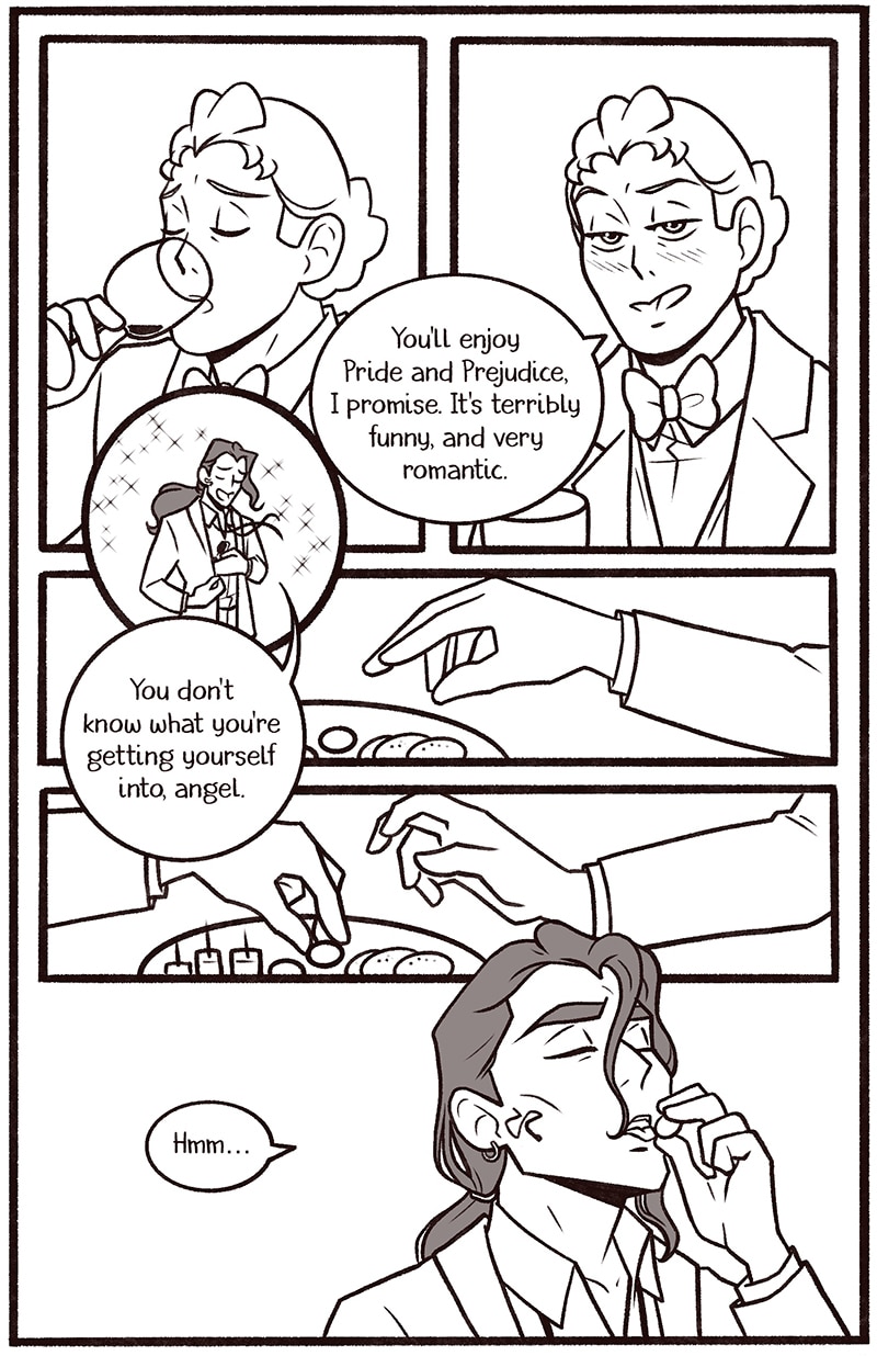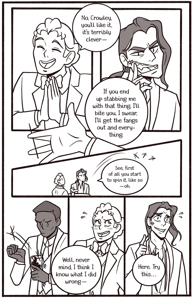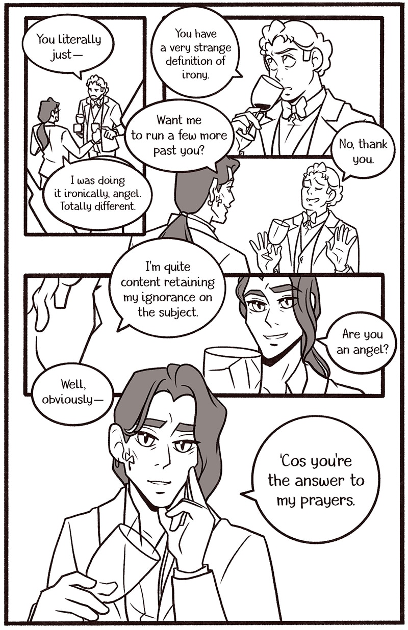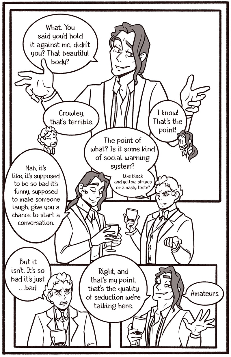 Welcome to my newest Good Omens comic One Night in Bangor (And the World’s Your Oyster). The explicit fic is written by Atalan, which you can read here: https://archiveofourown.org/works/20053450?view_adult=true.