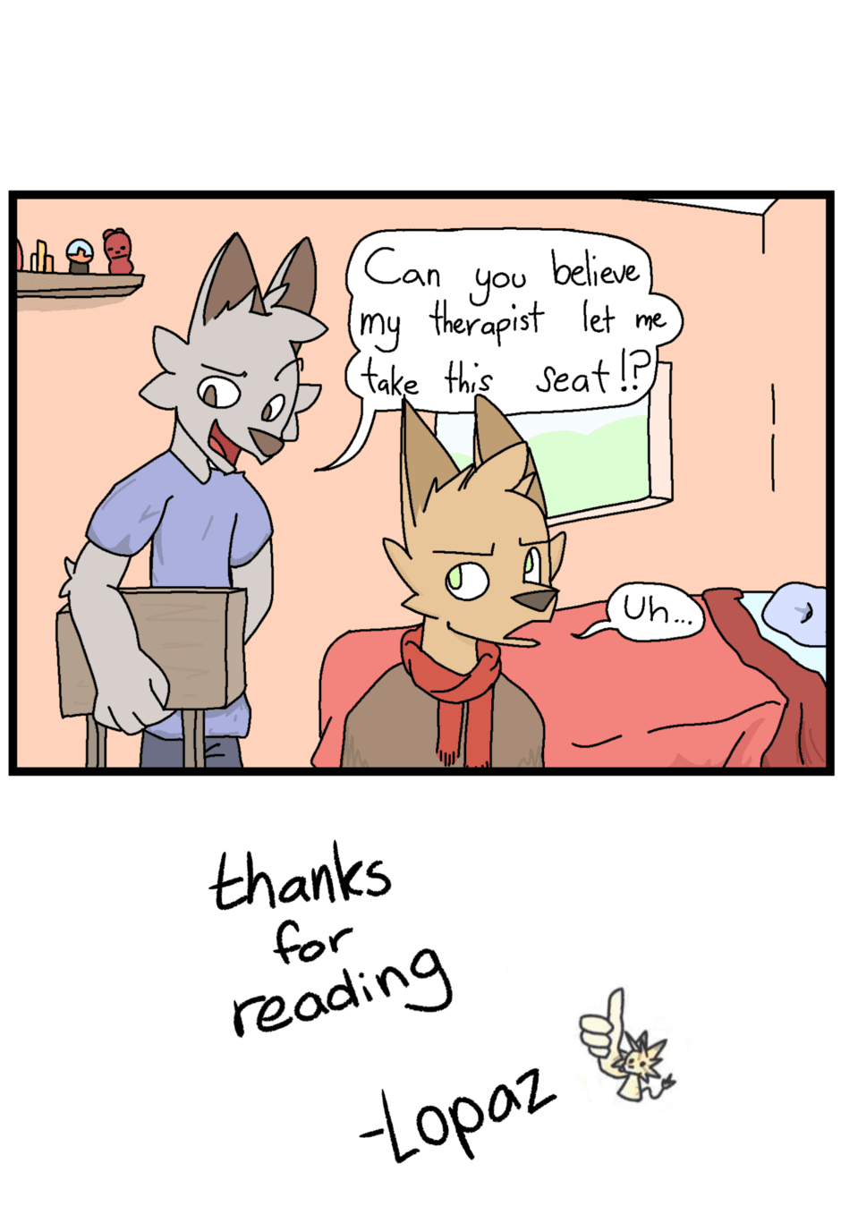 (November 4, 2022) Silly little comic featuring a random character that takes things *a bit too literally* One my most favorite comics ever, and I hope you enjoy it as well!!! Thanks for reading!