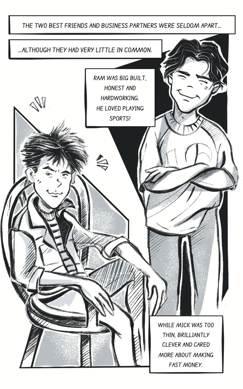 Ram was big built, honest & hardworking; while Mick was too thin, brilliantly clever & cared more about making fast money.