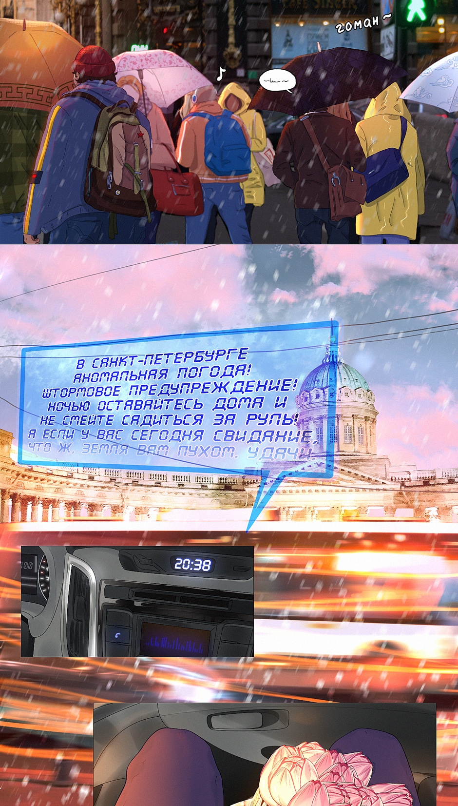 Нікіта тым часам задаўбаўся. Праца пракаўтнула яго й ён проста хоча на ручкі. Але, напэўна, просіць ён занадта шмат, таму што наперадзе - найгоршае спатканьне ў яго жыцьці, альбо нават й за ўсю гісторыю Санкт-Пецярбурга.