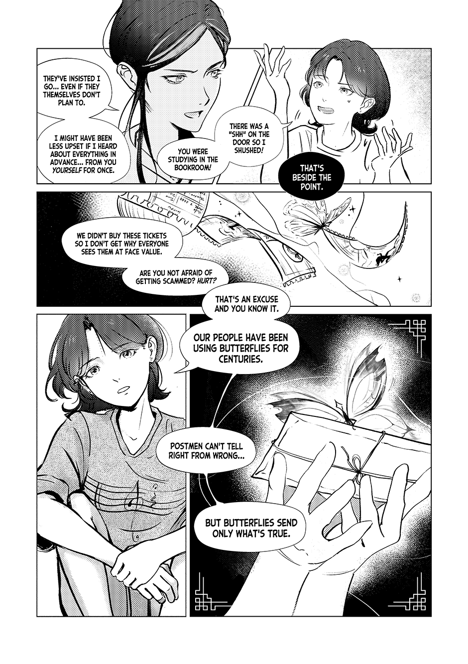 Aurore and Dawn Tang are sisters with different career paths; one in the sciences, the other in the fine arts. Their lives transform after receiving an invitation to a theatre show from the butterfly messengers. This enigmatic message leads them to their parents' hometown, where Aurore discovers a revelation that fundamentally shifts her perspective on her work as she reevaluates her aspirations and goals.