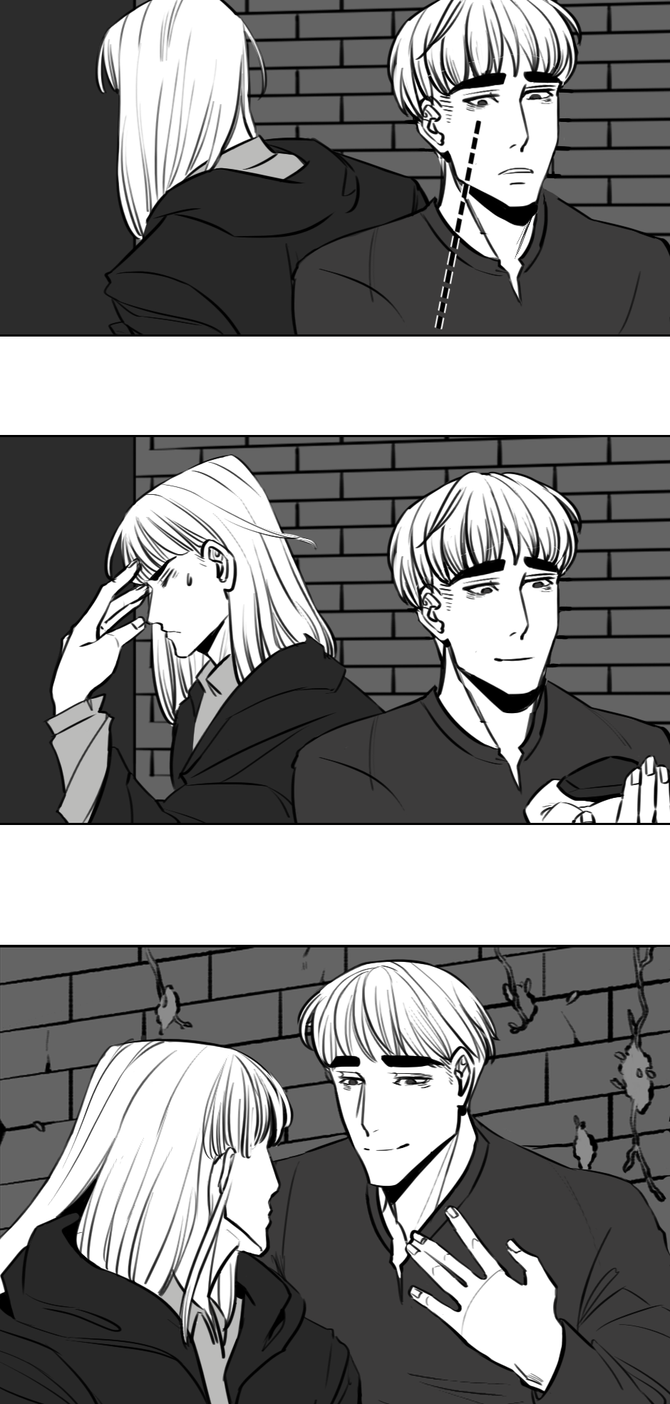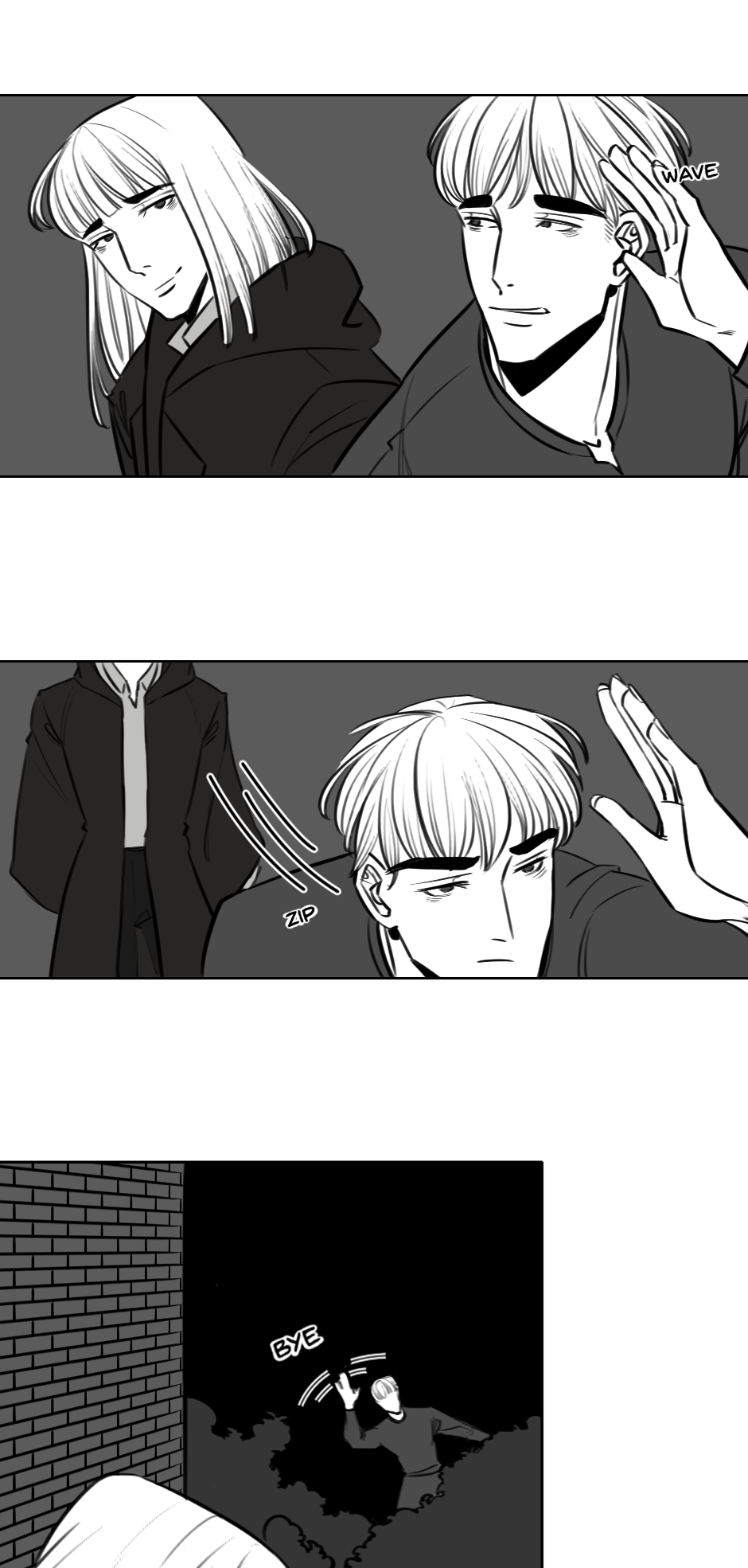 A comeback! I've started reading your story today and I'm in awe, so it makes me really happy that you've decided to continue it. It's amazing how you're able to convey the story without dialogue, that's such a difficult thing! Thank you for sharing your art with us. Take care!
