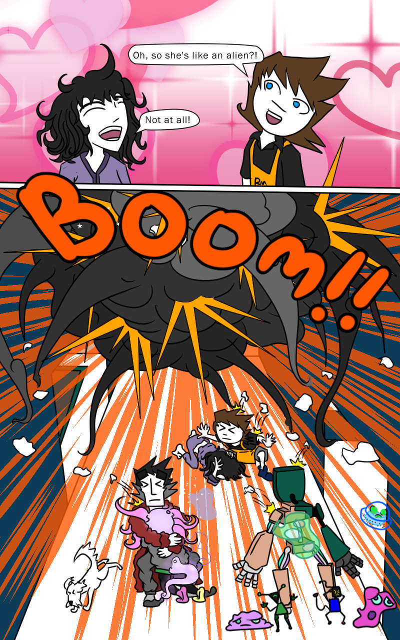 The Big Munch shift manger, Amno, gets pulled into a fight between a young scientist and cross-dimensional monsters. The era of sword and war may be over, but it seems the era of science and peace is short lived. What strange war is coming now? And what has this family of mad scientist been up to?