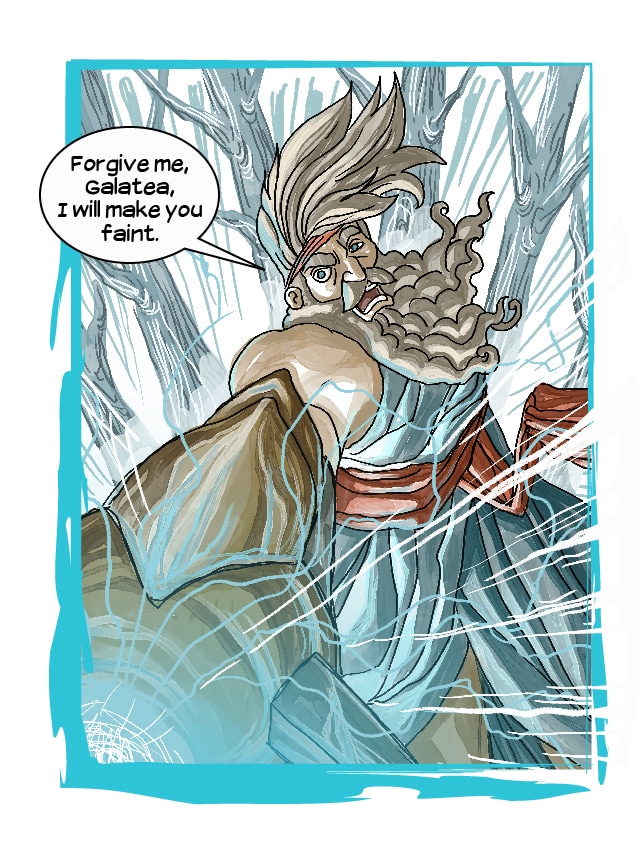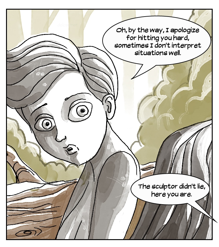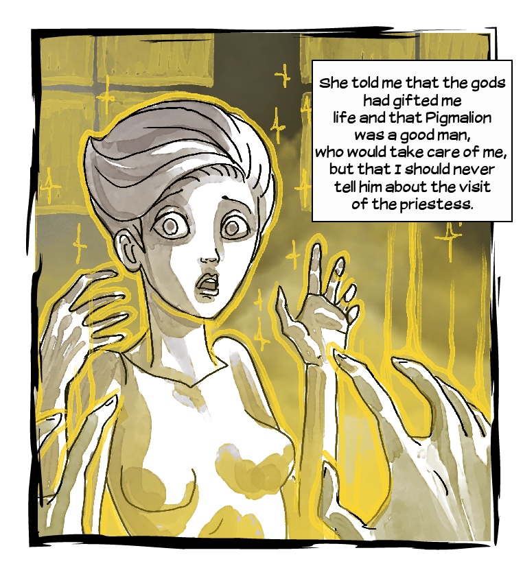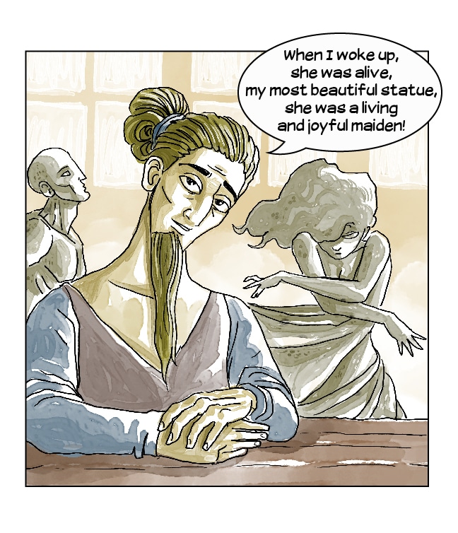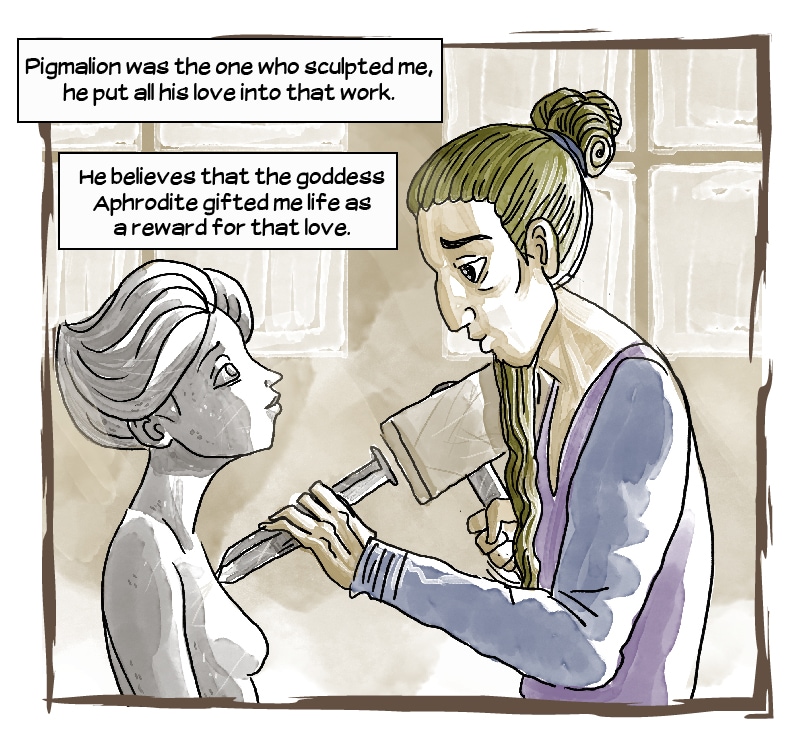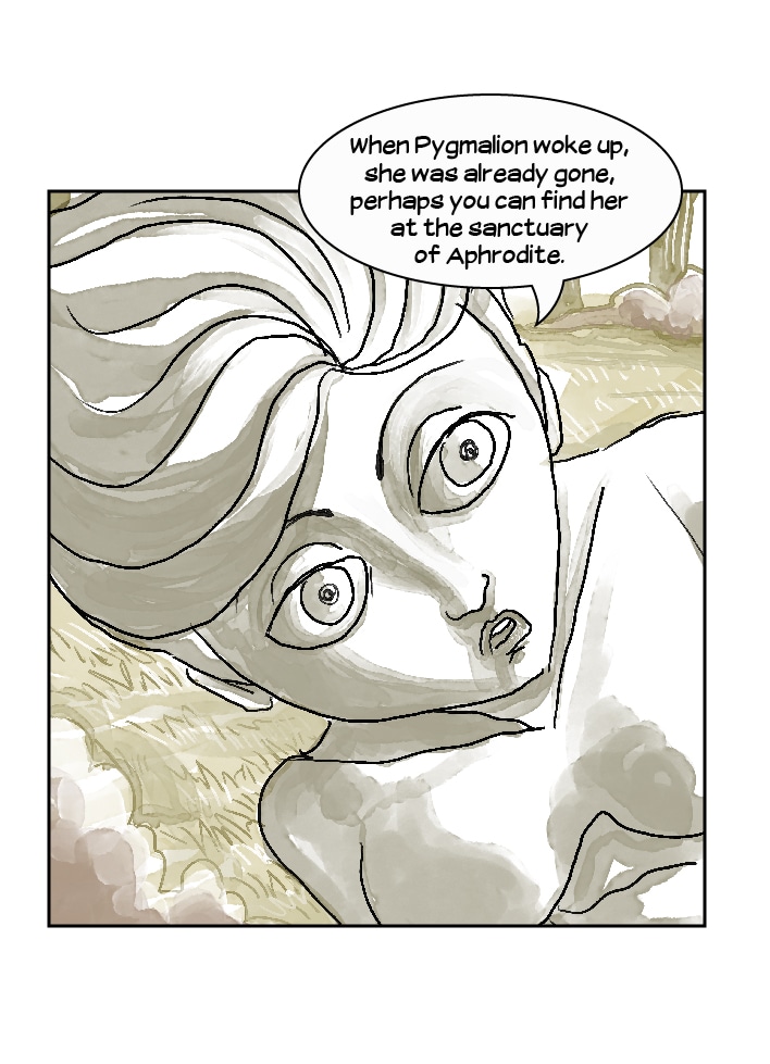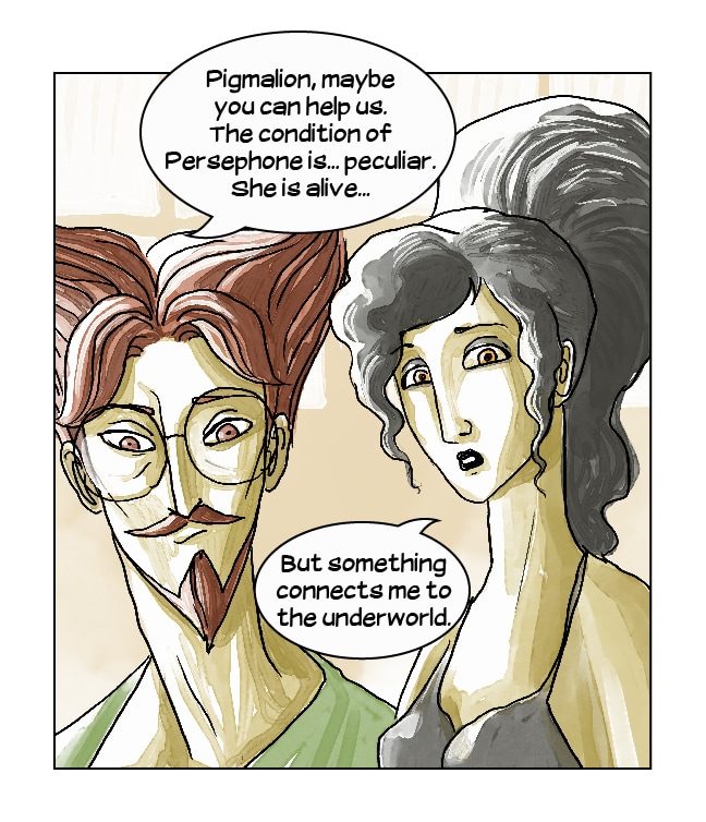 Persephone, Asclepius and Archimedes goes to Pygmalion's atelier, looking for the secret of life, since the sculptor gave life to his most beautiful statue, but Galatea, the living statue, is ready for a fight!