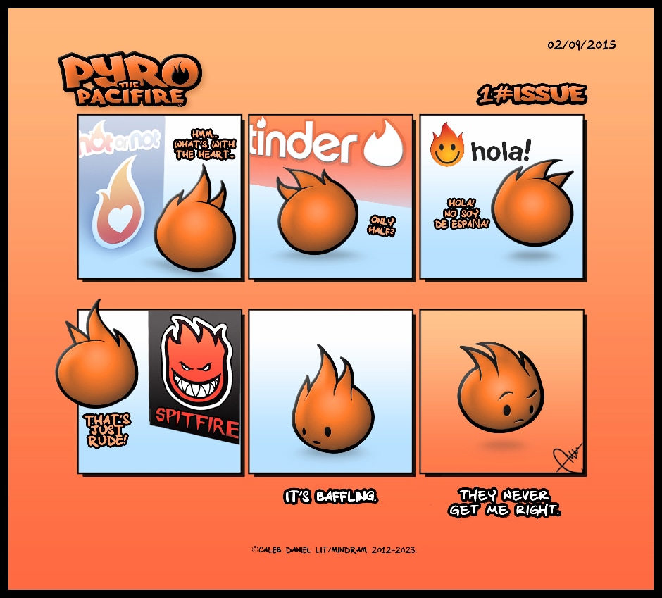 Pyro the Pacifire is a comic series and a game in development that follows the adventures of a fireball called Pyro and his friends and foes. Originally unveiled in Facebook 2015, the comic now makes its return after years of silence and takes a step forward with Webtoons. We'll start with the original Pyro comics, eventually moving on to the new, unpublished ones.