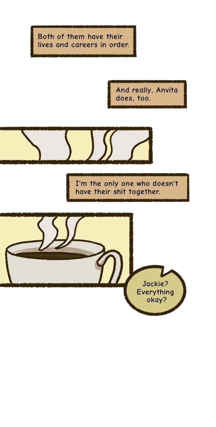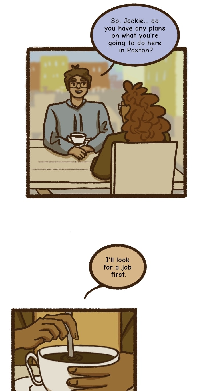 Jackie Patel screwed up. Even so, she's surprised to find herself giving up everything she's currently doing and moving to the small town of Paxton. Here, she meets Marcie Smith, who might just be the nicest (and most forgetful) person she's ever made aquaintance with. Jackie's determined to leave her past self behind - even if that means throwing all of her principles out of the window and opening herself up to friendship. And, possibly, something more than that... (GL/slowburn)