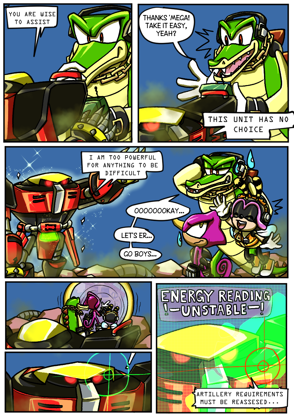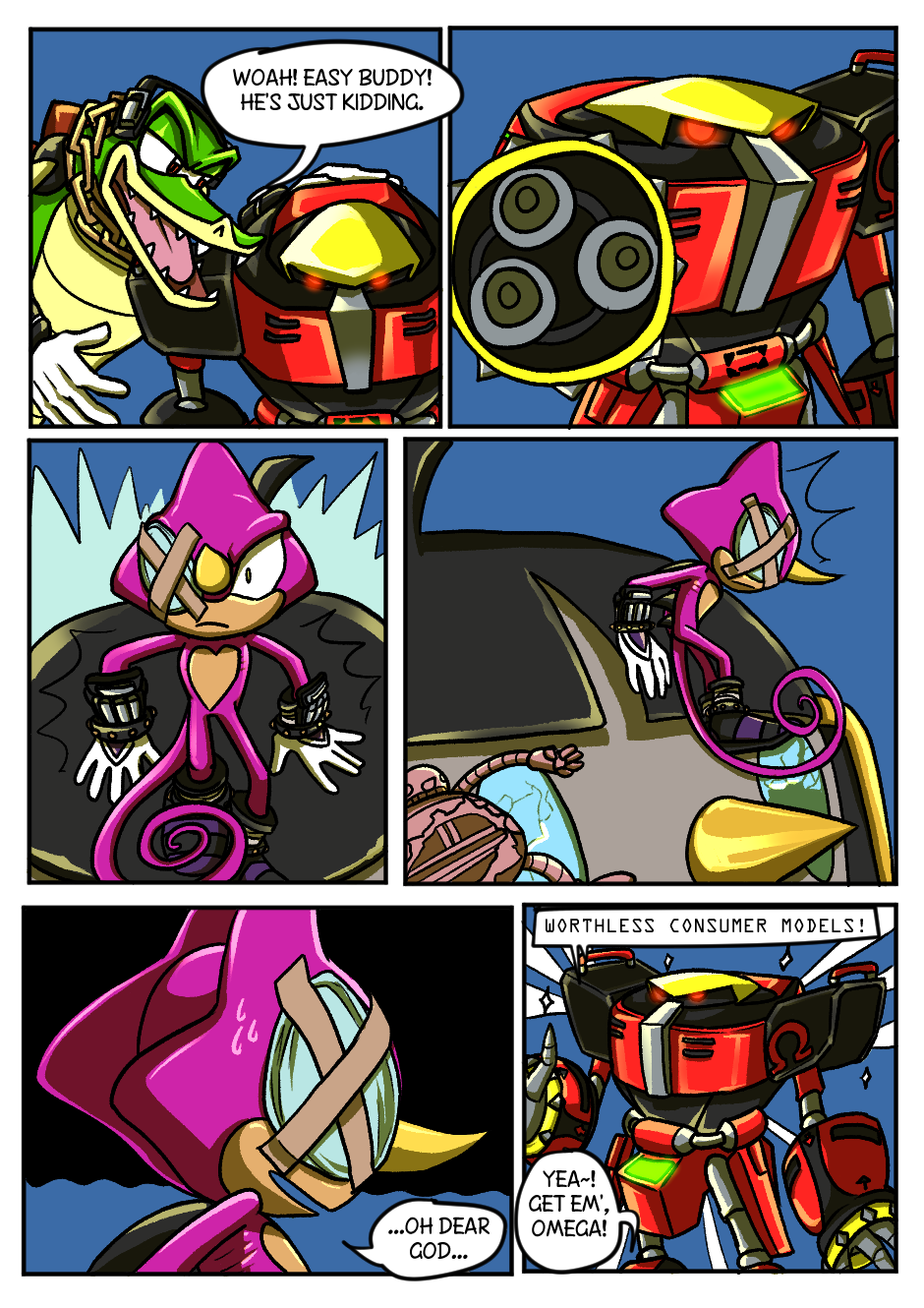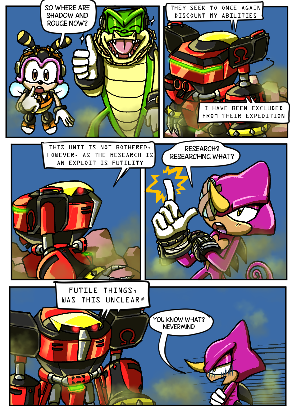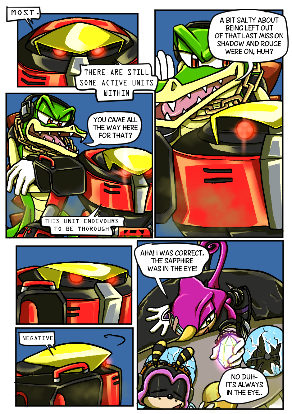 This is definitely worth getting Tapas for. Love the comic so far. My favourite moment has to be when the wolf did the thing to remove Espio's communicator. I honestly did not expect that to happen and the continuity is there which is also cool