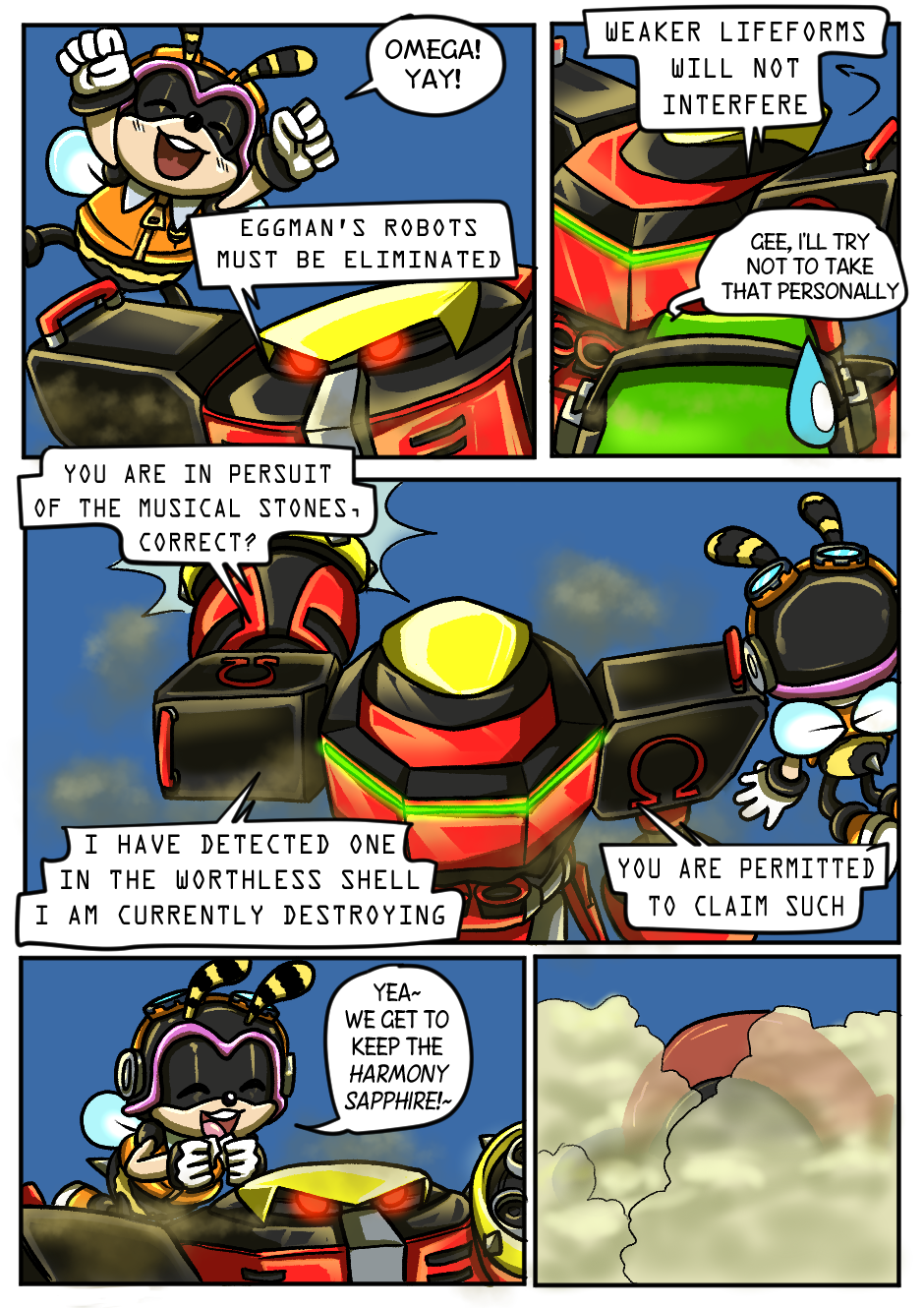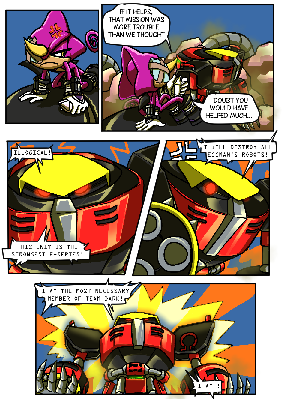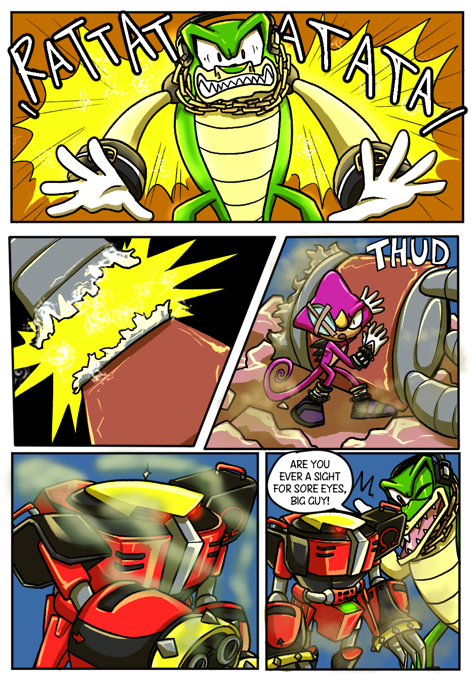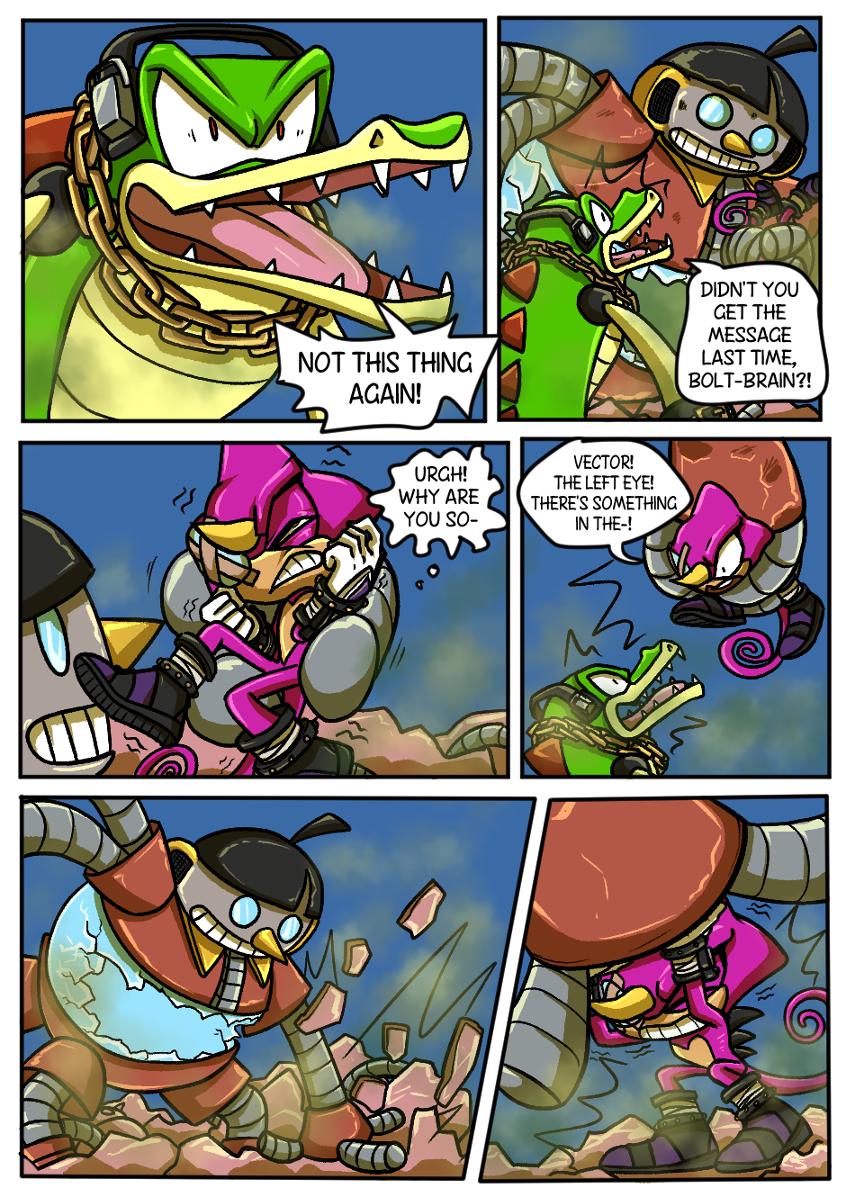 This is definitely worth getting Tapas for. Love the comic so far. My favourite moment has to be when the wolf did the thing to remove Espio's communicator. I honestly did not expect that to happen and the continuity is there which is also cool