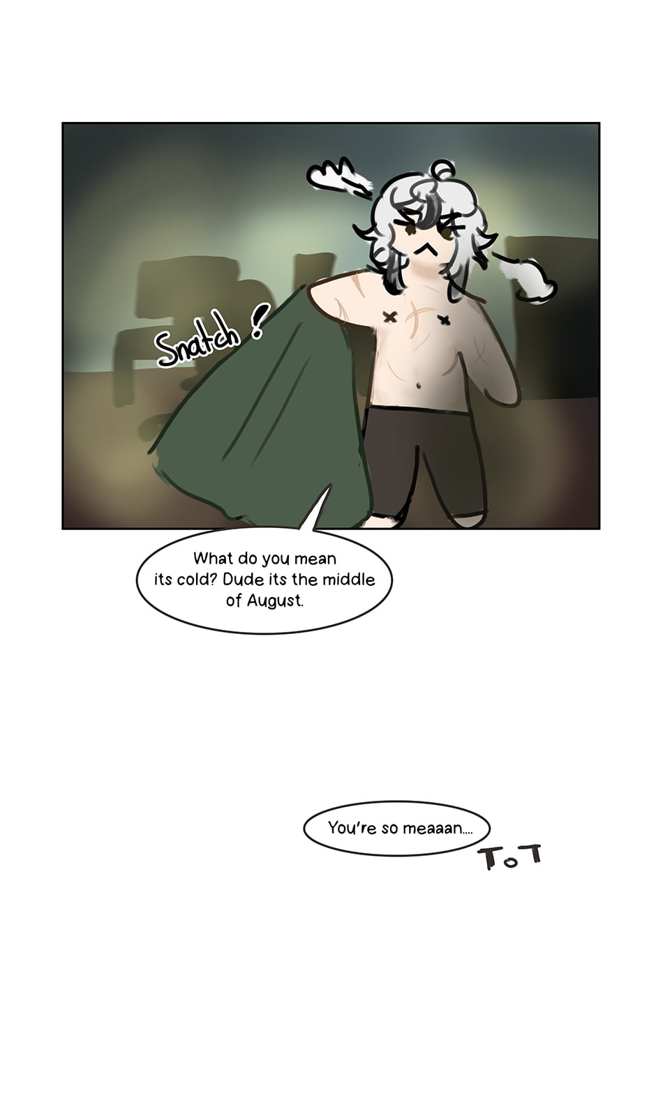 This comic includes swearing, depictions of physical injuries (scars, wounds), mentions and depictions of self harm, mental disorders, homophobia, religion, racism and other sensitive and hateful topics. Viewer discretion is advised.
