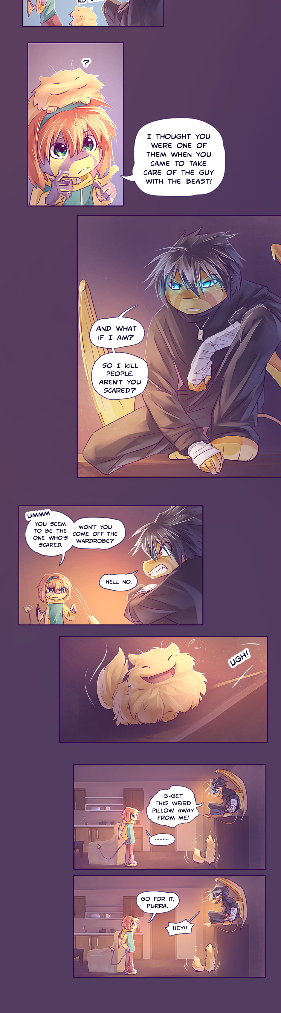 Ok, infodump is behind us! (^▽^;)ゞ And Purra just wants to be friends (in truth he wants to use a higher observation post than Mini's head)!