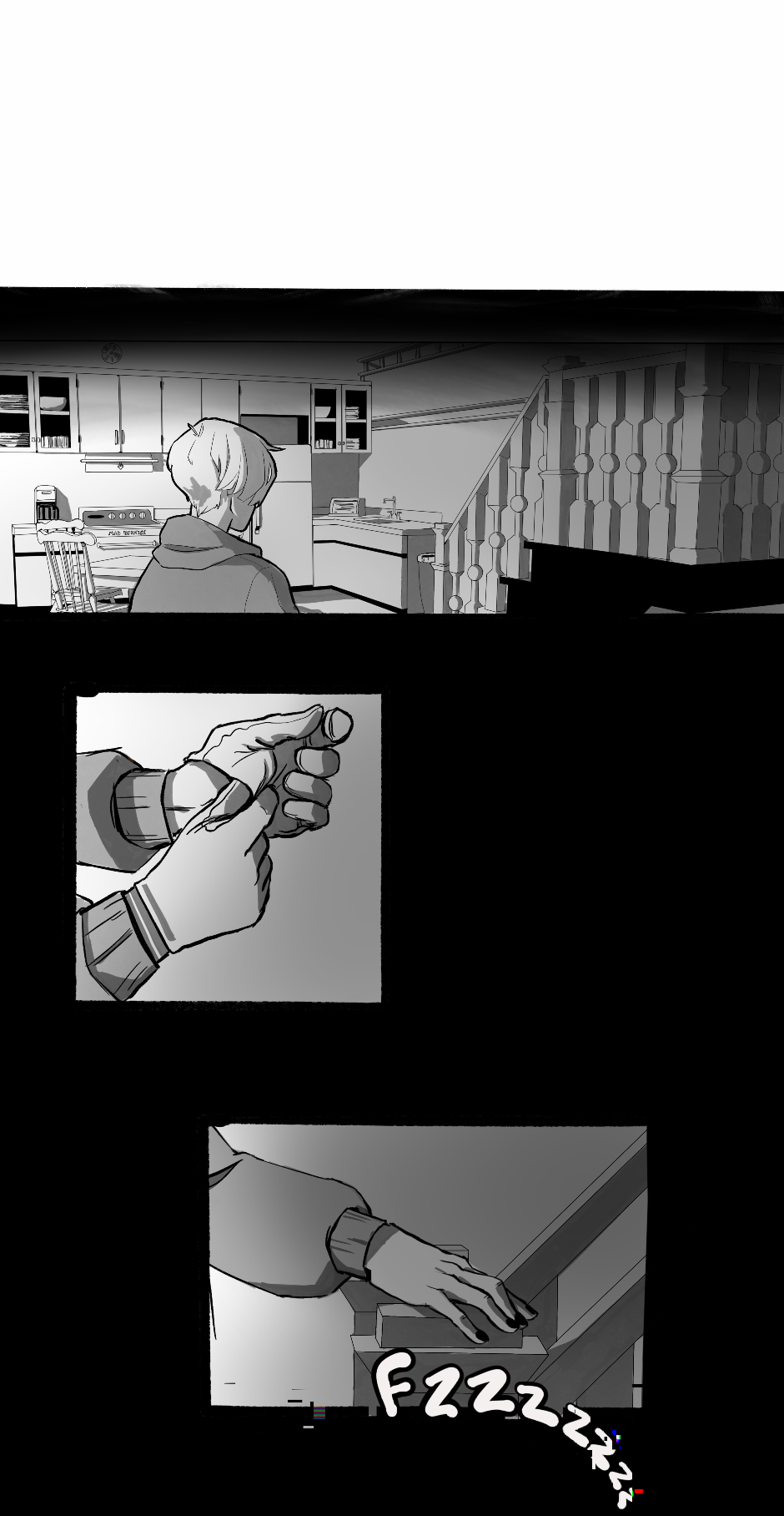 Fun fact! When I started this comic I was so completely overwhelmed by the idea of drawing backgrounds that I made this entire house in The Sims and took screenshots to use as references. Keen eyed simmers may recognize that bread box lol.