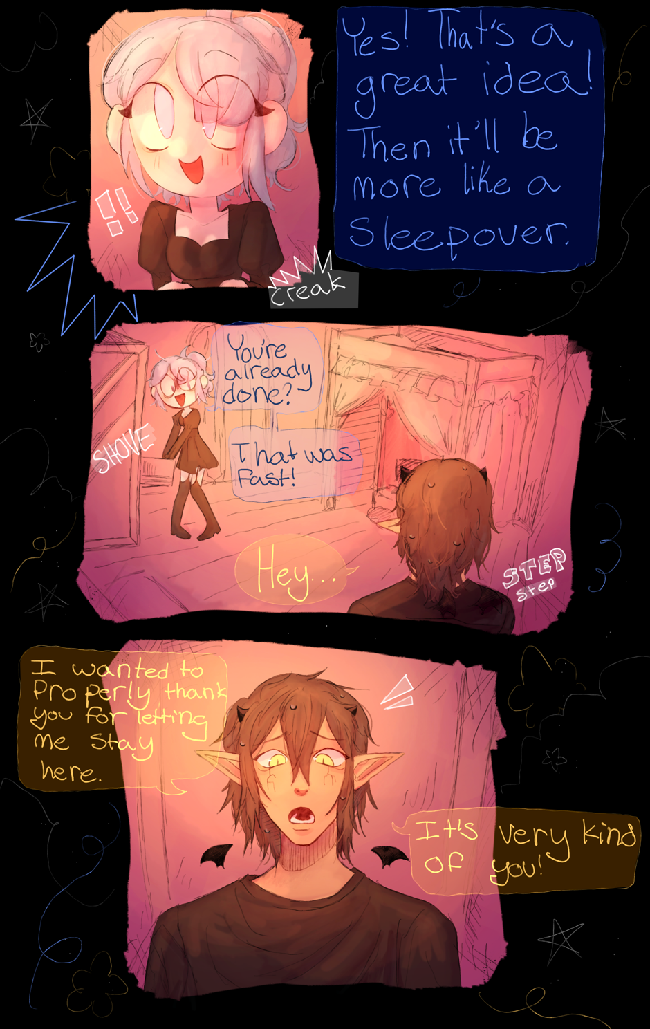 A human, Veronica, meets a demon named Damien disguised as a bat and lets him into her house. When Veronica realizes his true form, she discovers he’s in need of a home. She chooses to let Damien stay but will only be met with chaotic events. Follow these two and their friends as they learn more about each other.
