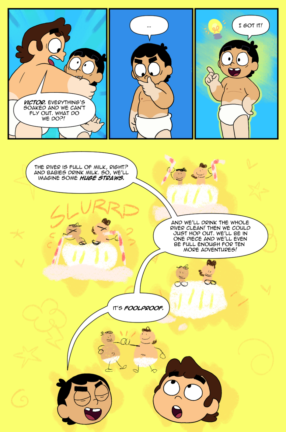 Little do they know that a suspicious fiend is willing to stop them in their tracks. Will Baby Victor and Baby Valentino be able to find this ancient, infant treasure and make their wish. Find out in the first ever web-comic based on the Cartoon Network series, "Victor and Valentino".