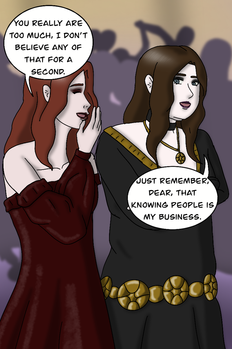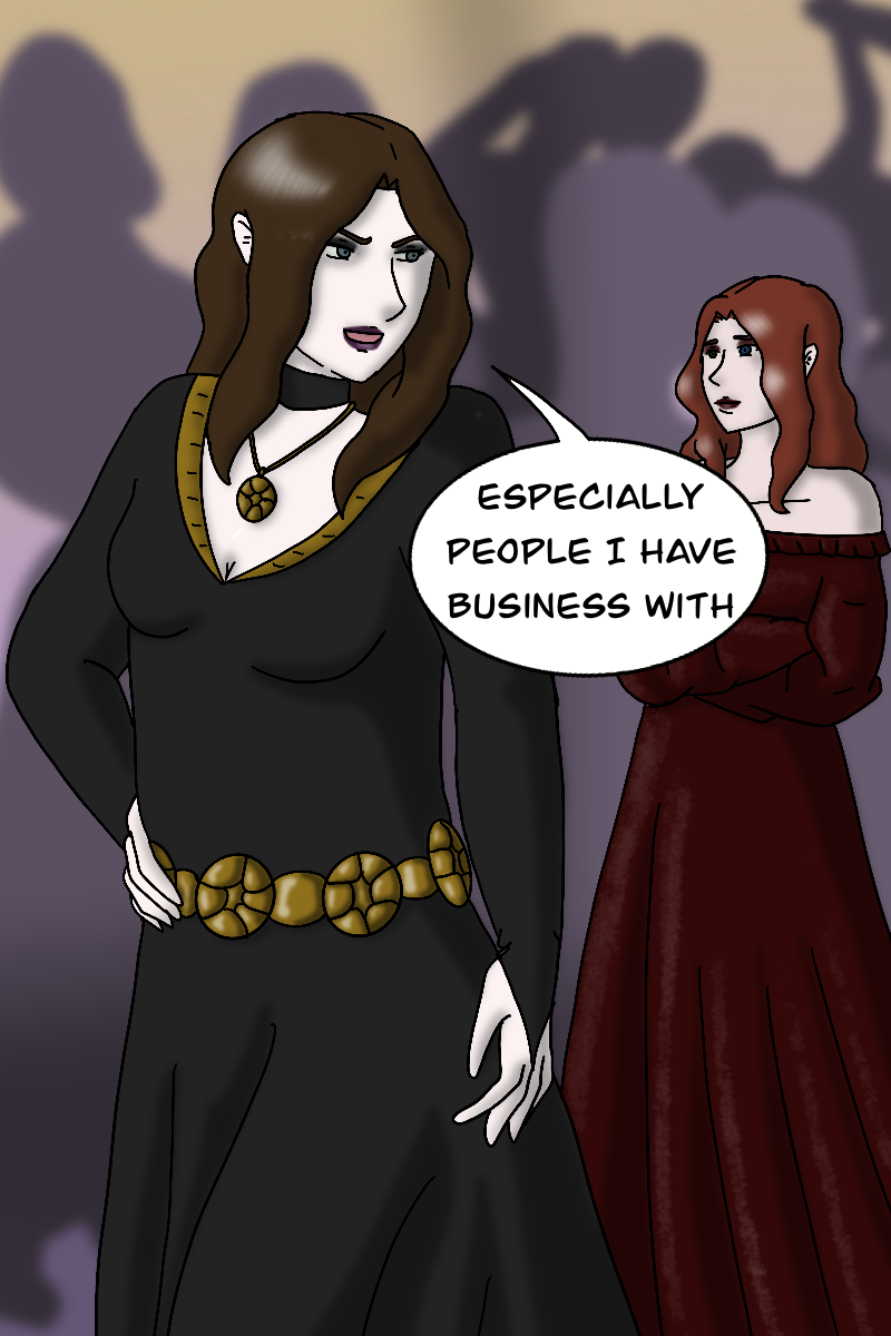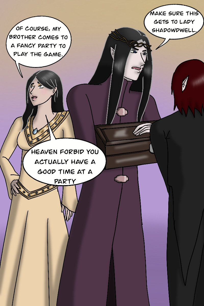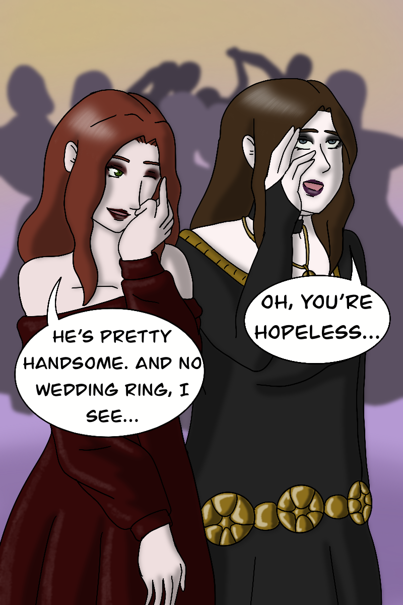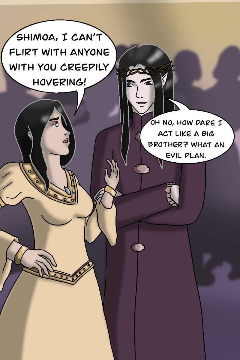 Shimoa and Giana enter the party. While Giana is here for fun and to tease her brother, Shimoa is here on business. And that business quickly finds him.