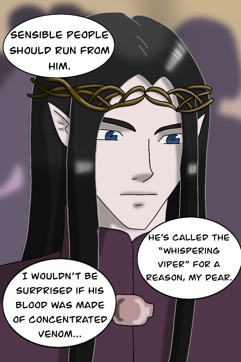 Shimoa is son to an elven mother and human father. The politics of all those around him only seek to use him. But he is the Whispering Viper, and has his own dark plans. Revenge calls, vengeance for his mother's death, for his mistreatment by his father.