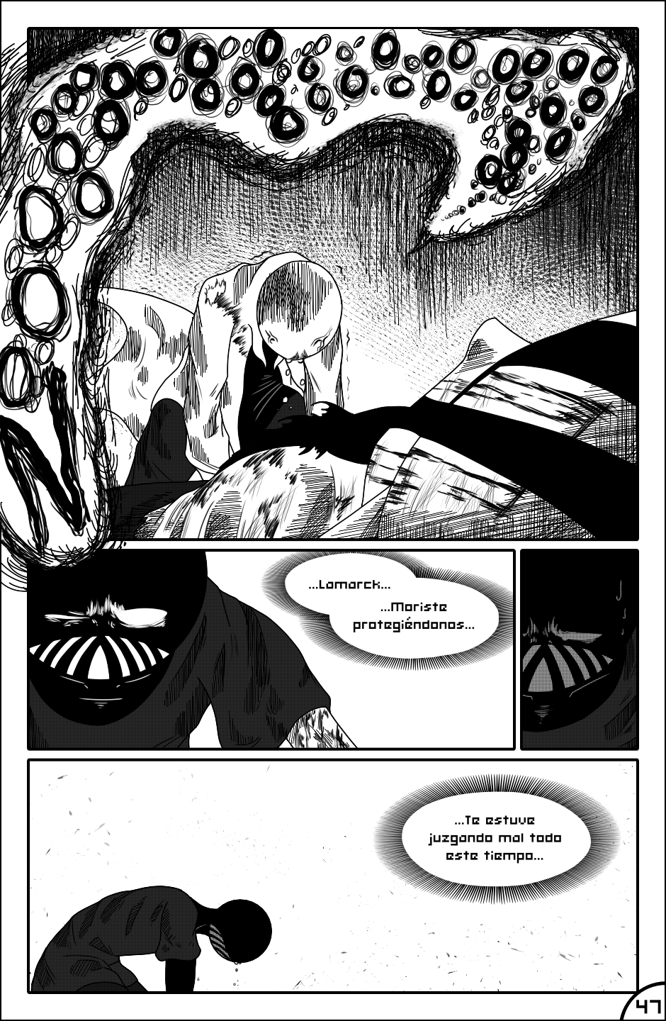 Este nuevo capitulo es definitivamente mi capitulo favorito, me encanta el nuevo estilo en blanco y negro y el como para algunas escenas vuelve a tener color para darle un mayor impacto a lo que sucede en esta, la atención al detalle es fenomenal, definitivamente el comic evoluciono con el paso del tiempo y no puedo esperar a ver lo que sucede después.