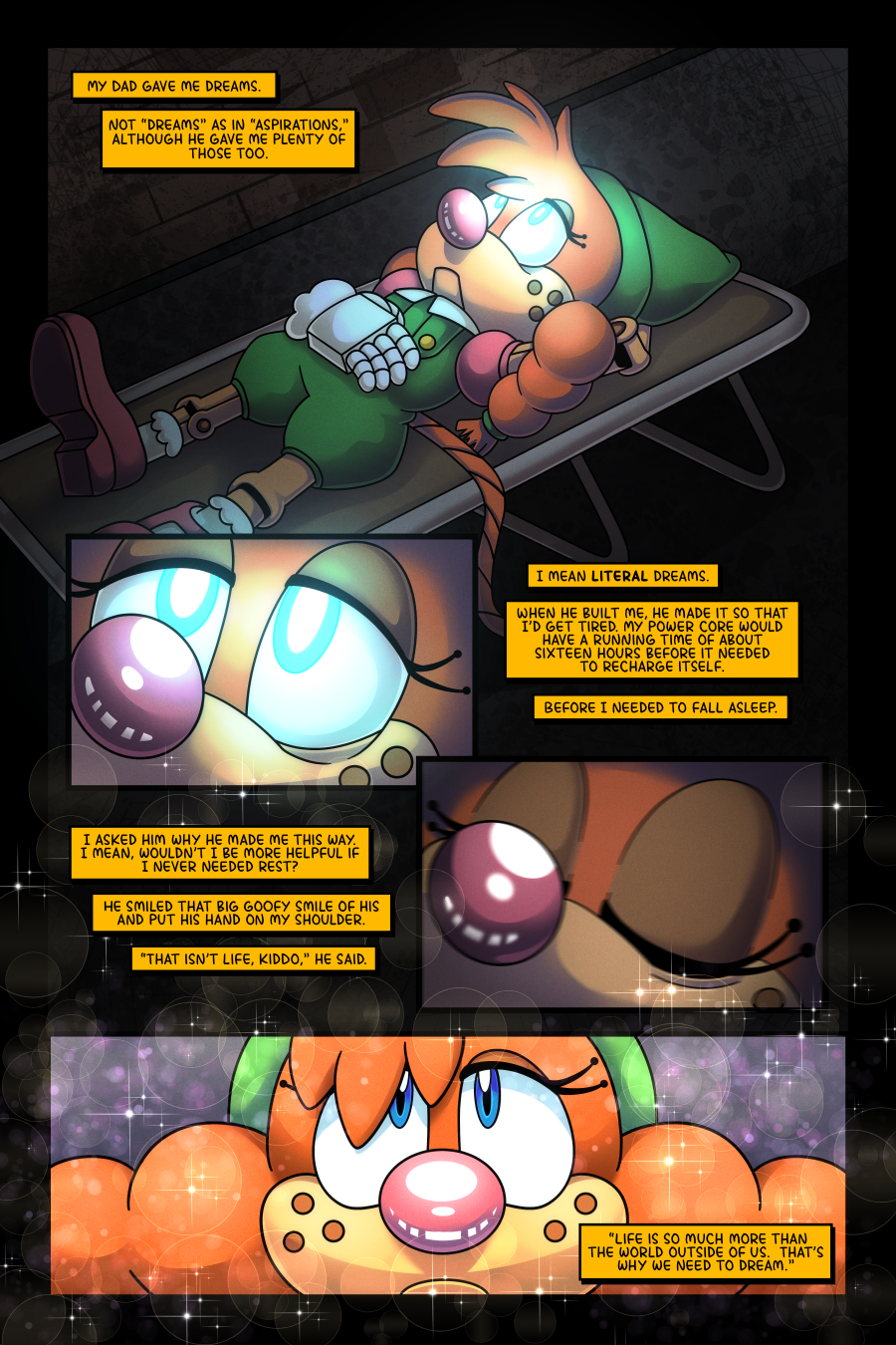 When robots dream, what fills their mind as they rest? For Belle, the answer might be more complicated and peculiar than even she can fathom...if she even wants to understand it. Writer: Kinetsmac01 Artist: https://twitter.com/TheJammerlee Cover Artist: https://twitter.com/Stelilagriff881