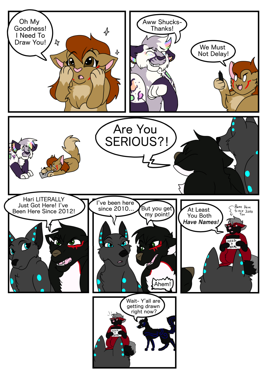 Some Self Satire on having many old OCs I've never drawn, but having a habit of drawing many of my newly adopted OCs