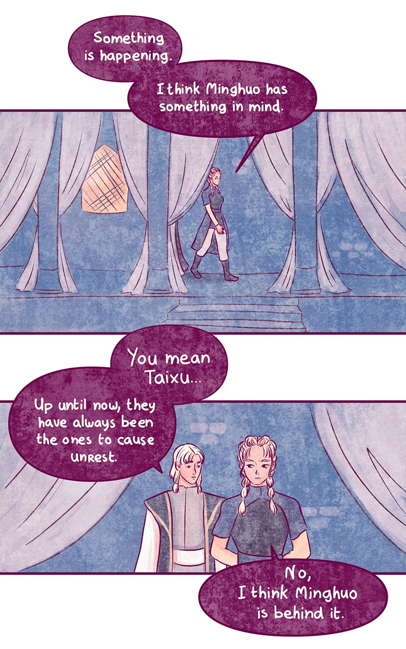 The harmony between the three kingdoms of Taixu, Minghuo and Qingse seems to be severely tested. To ward off the threat of Taixu, the ruler of the Minghuo kingdom decides to put aside hostilities towards the Qingse tribe and to force his son - the crown prince - to marry the younger sister of the tribal chief, to seal an agreement between the two peoples.