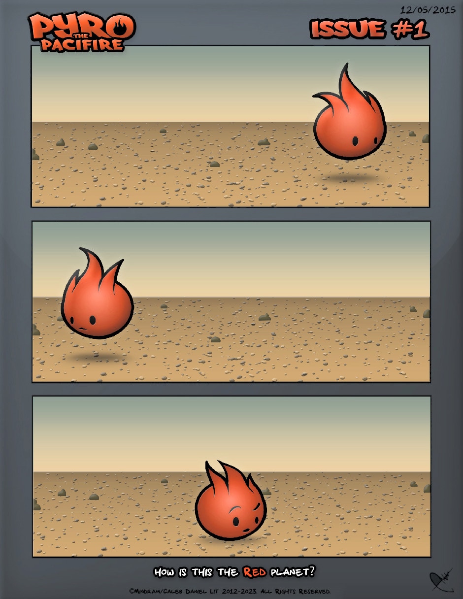 Pyro the Pacifire is a comic series and a game in development that follows the adventures of a fireball called Pyro and his friends and foes. Originally unveiled in Facebook 2015, the comic now makes its return after years of silence and takes a step forward with Webtoons. We'll start with the original Pyro comics, eventually moving on to the new, unpublished ones.