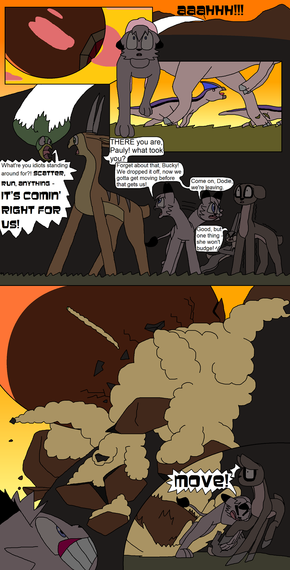 (Note 2: some episodes of this comic contain instances that, while not too graphic in detail, will show a fair amount of blood (deep cuts and tears, scratches, bites, etc.), along with more brutal acts of violence but with no blood/graphic detail to them. Any blood-filled graphic content exceeding this will be marked under mature. Read on with this in mind.)