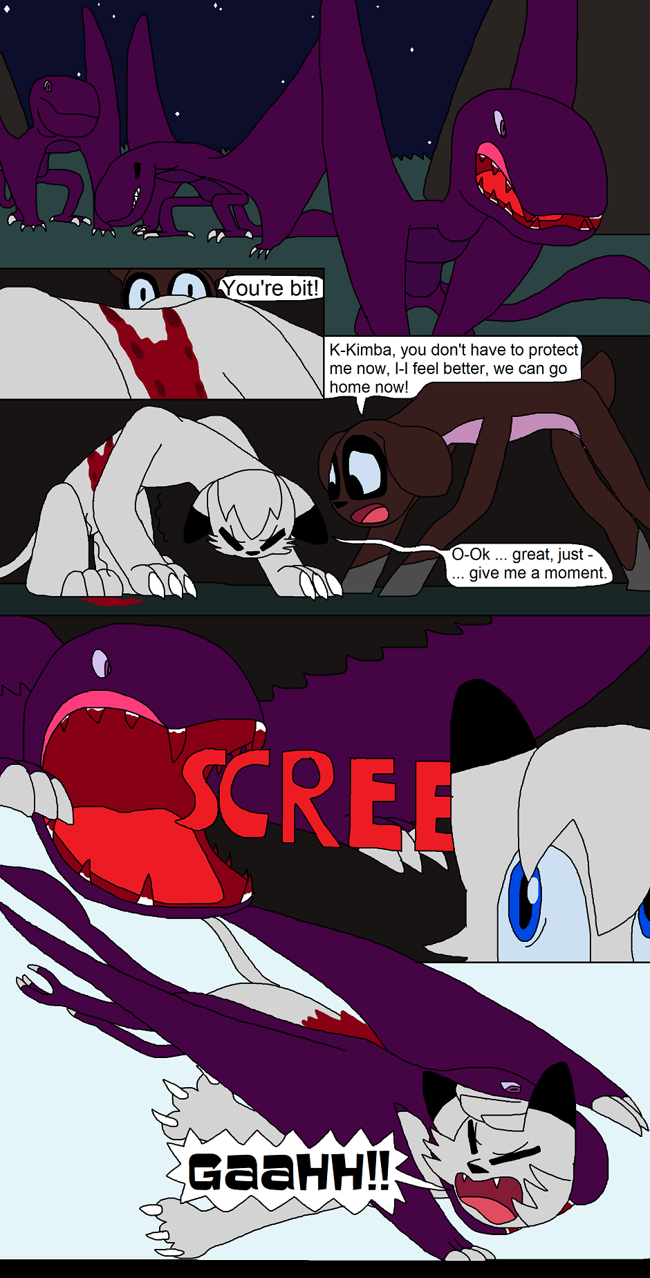 (Note 2: some episodes of this comic contain instances that, while not too graphic in detail, will show a fair amount of blood (deep cuts and tears, scratches, bites, etc.), along with more brutal acts of violence but with no blood/graphic detail to them. Any blood-filled graphic content exceeding this will be marked under mature. Read on with this in mind.)