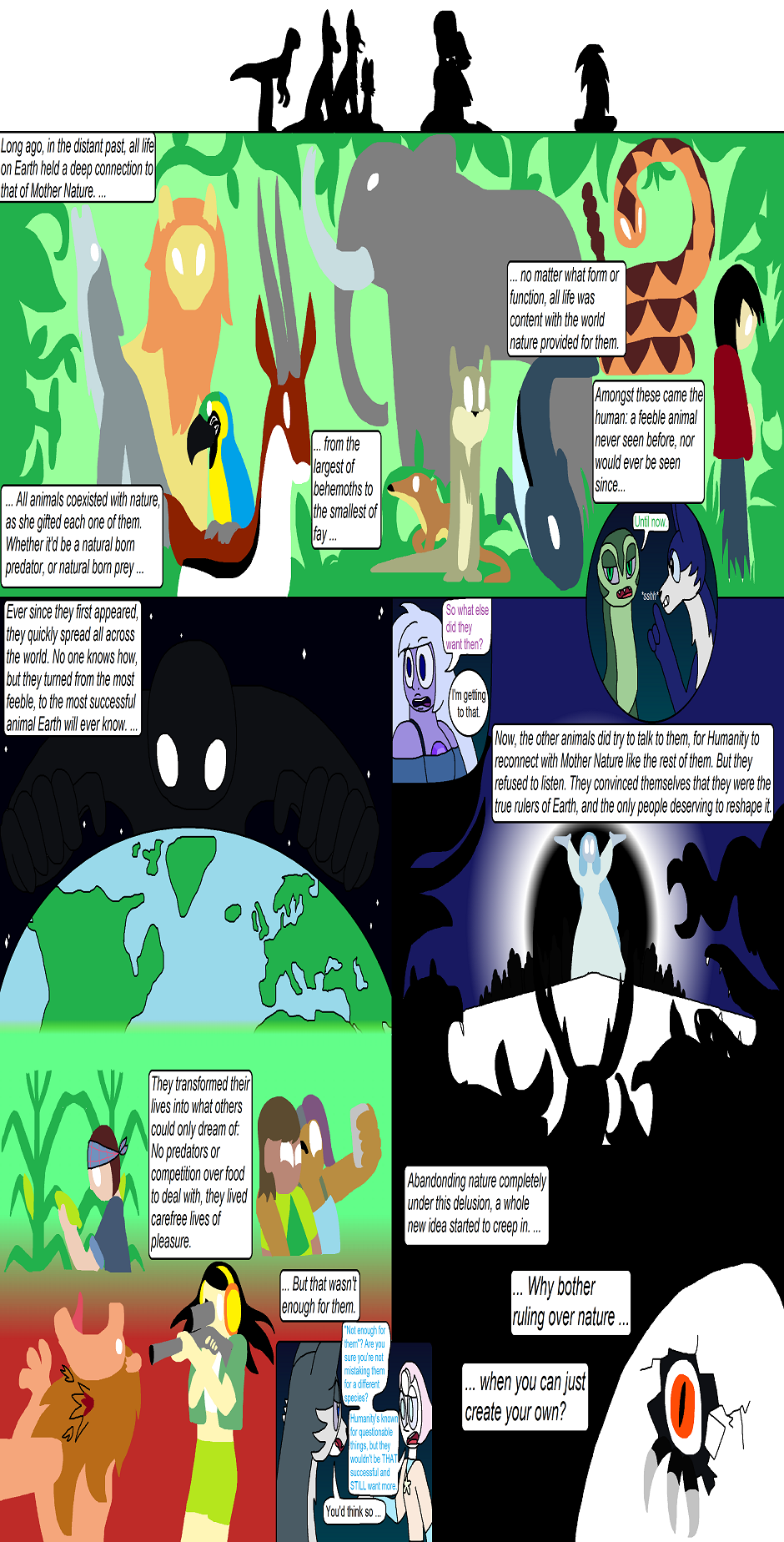 (Note 2: some episodes of this comic contain instances that, while not too graphic in detail, will show a fair amount of blood (deep cuts and tears, scratches, bites, etc.), along with more brutal acts of violence but with no blood/graphic detail to them. Any blood-filled graphic content exceeding this will be marked under mature. Read on with this in mind.)