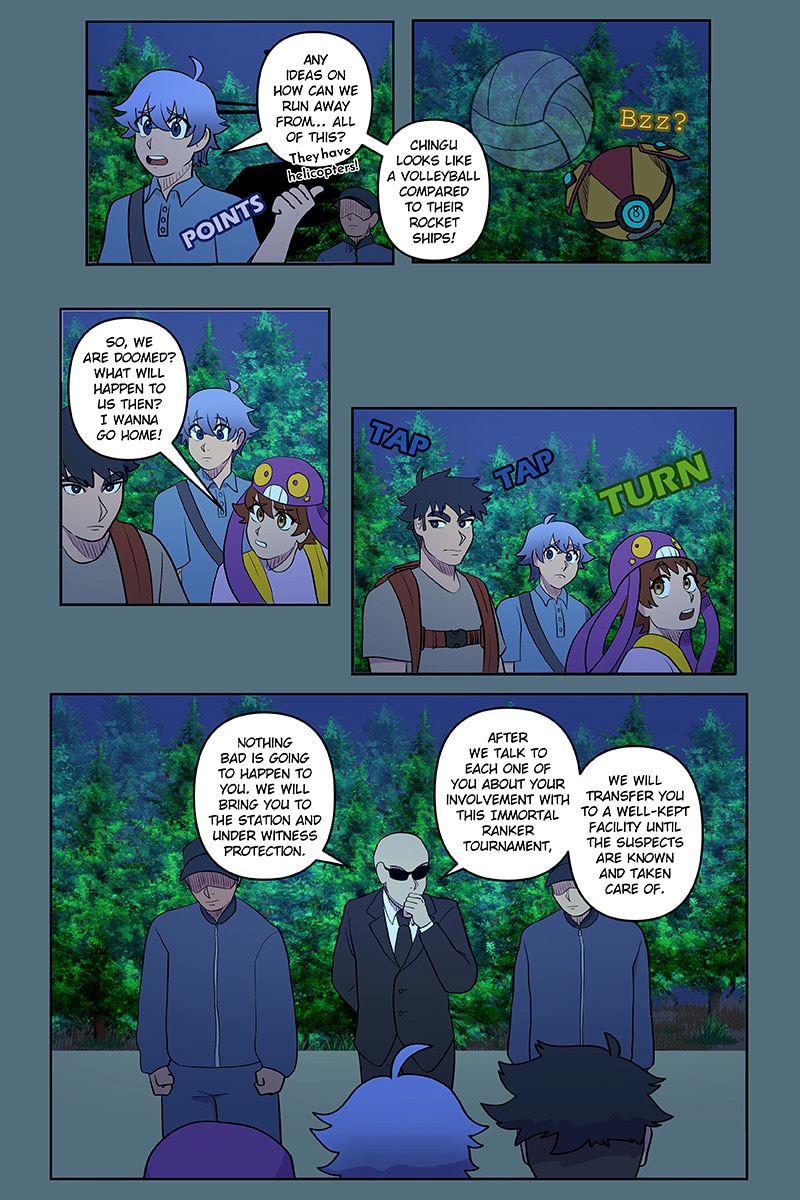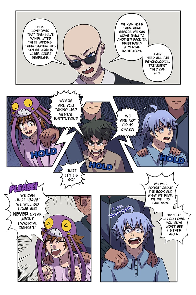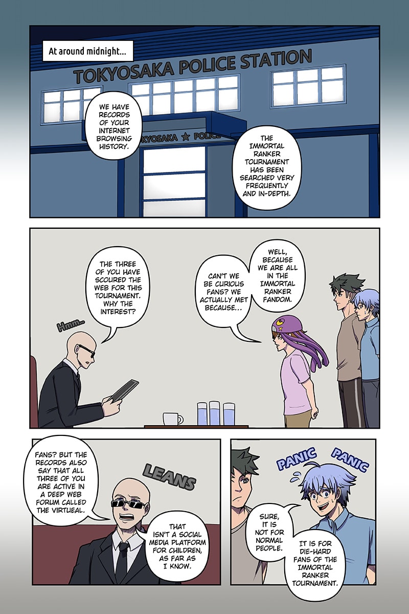 Detained by the police, the trio witness a large-scale cease-and-desist order to stop all Immortal Ranker Tournament activities. They fear for their fate until an unlikely ally rescues them.