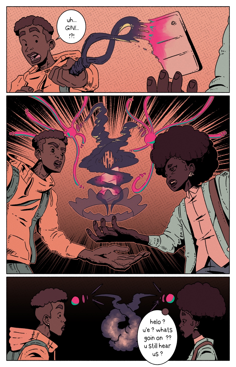 'UM' is a magical girl comic abt eugenée, a blk, nonbinary, aspiring birth-worker who finds themself mixed up in a millennia-old conflict btwn the powers that be & a faction of cosmic, shamanic midwives