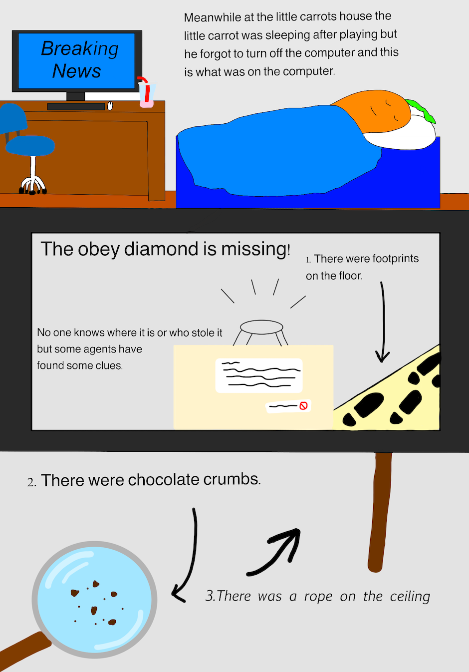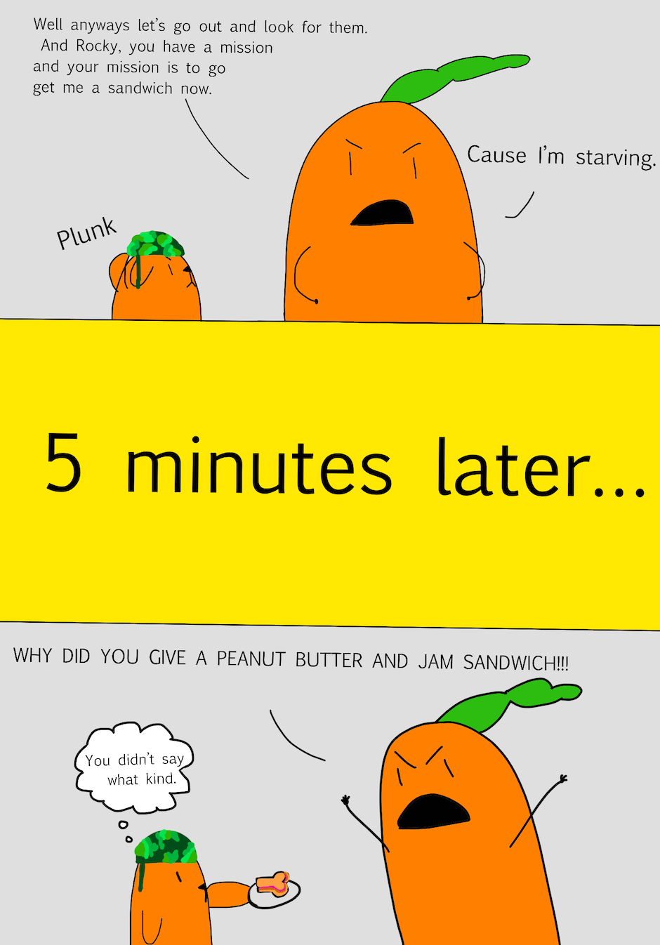Hi, my name is Jane and I am 9 years old. This book is about a little carrot who became a hero. There was a villain who wanted to take over the world. The villain had two evil friends that helped him with his evil plan. It was up to the little carrot to safe the world. Can our hero little carrot beat the evil villain or will he lose?