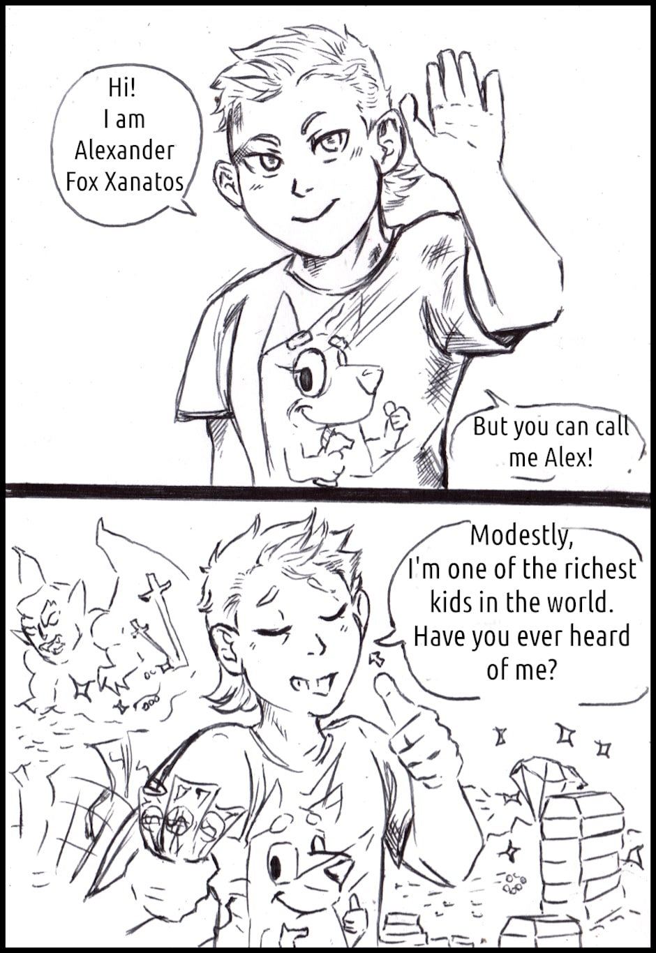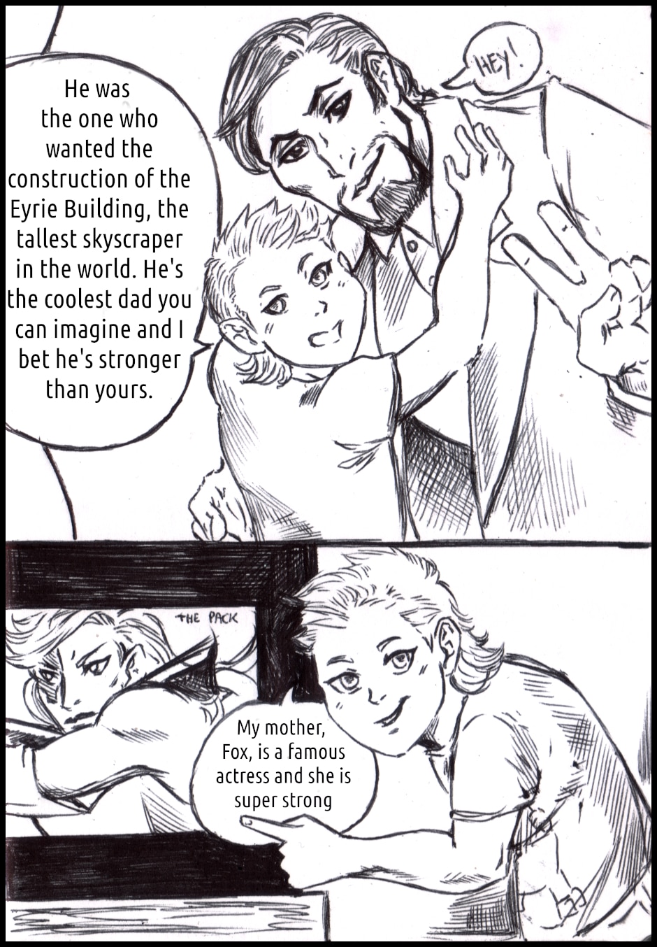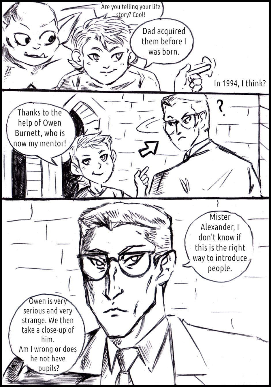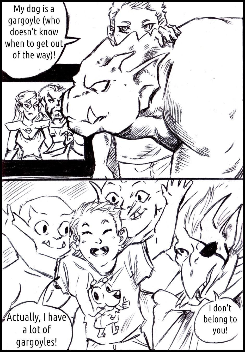 It's a Gargoyles fancomic! Mainly based on the story of the Xanatos family (David Xanatos, Fox, Alexander and Owen Burnett), but features all the gargoyles (of course, they live in the same castle) and more!
