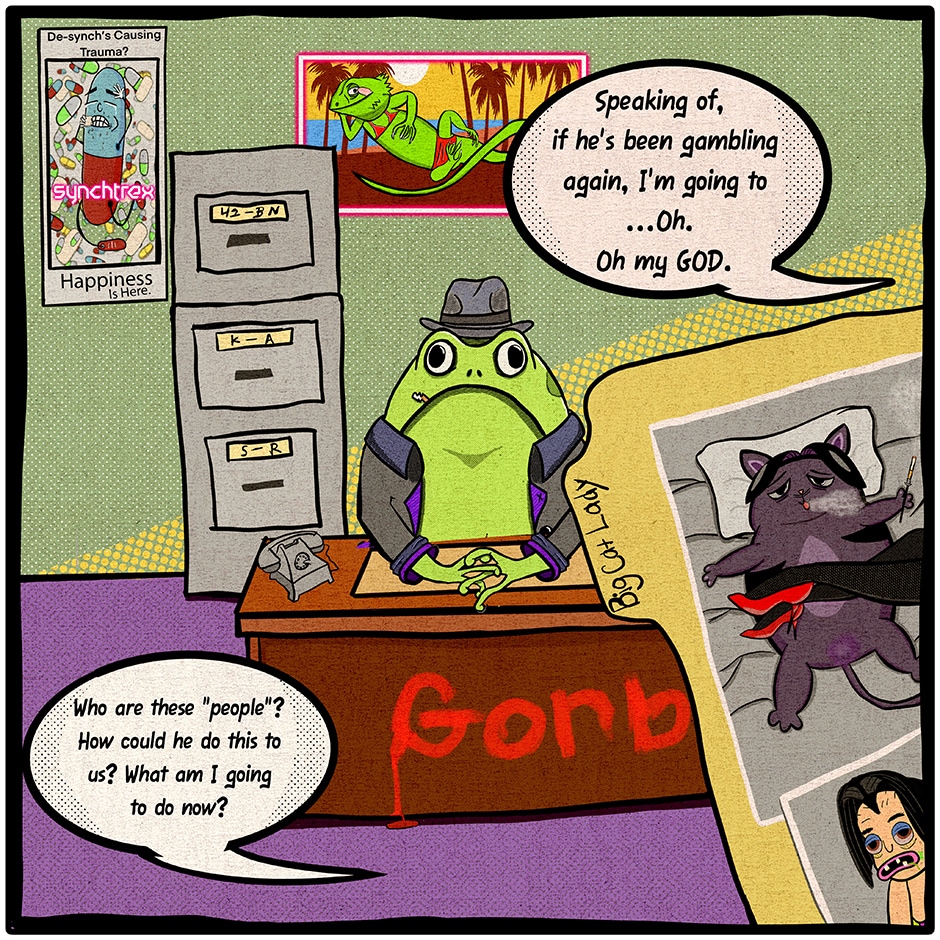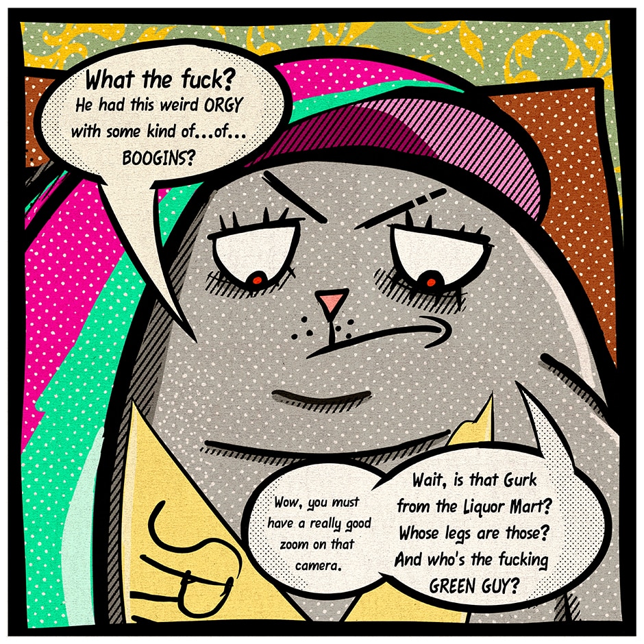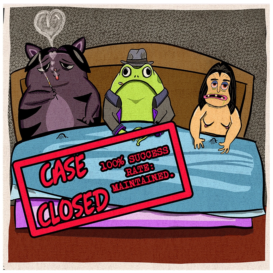 That sounds dirty. She hired him to follow her husband, a cat named Montenegro.