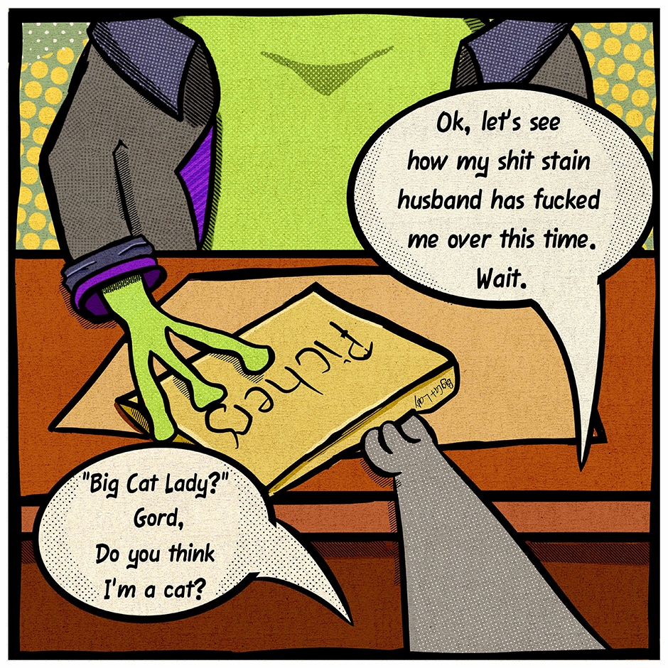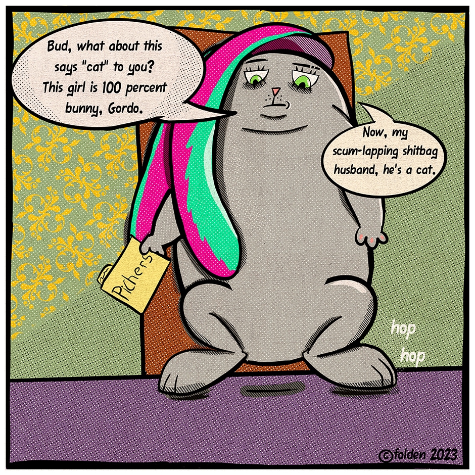 Lydia the bunny has some regrets about hiring Gord for a tail job.