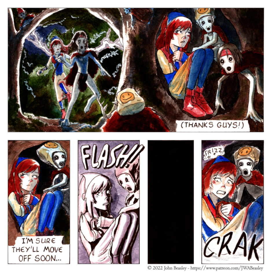 I wish I could think of a more effective way to do lightning flickers on a comic page. This is my best shot so far.