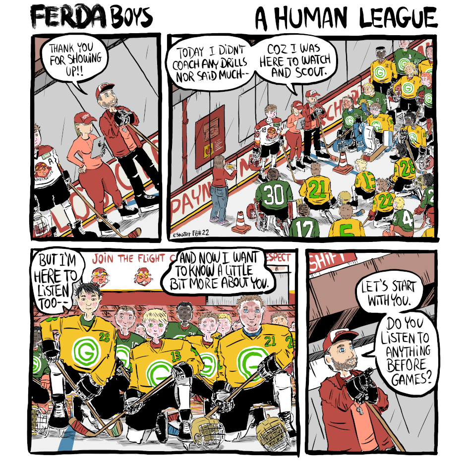 Careful on the answers, boys. Coach sounds serious business. Ferda Boys is a slice-of-life and sports webcomic about a group of junior hockey players. Also, it has its own score, THEME FROM FERDA BOYS by David Tulloch: https://soundcloud.com/hockeywebcomics/theme-from-ferda-boys And last but not least, please, if you like my work, you can Buy me a Coffee: https://www.buymeacoffee.com/hockeywebcomics :)