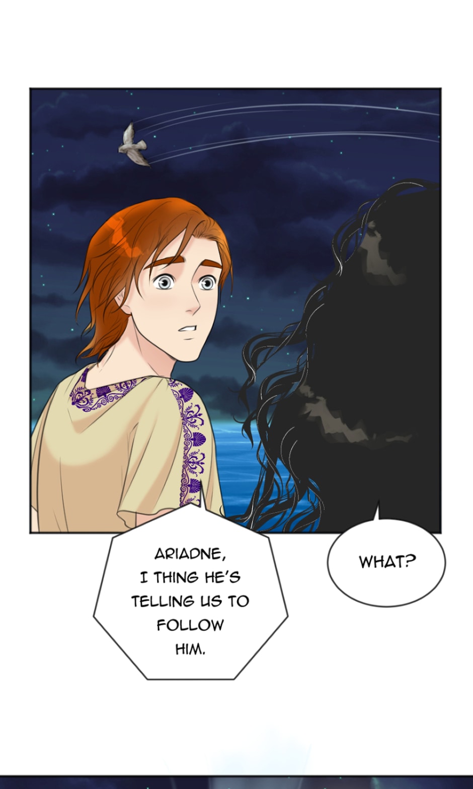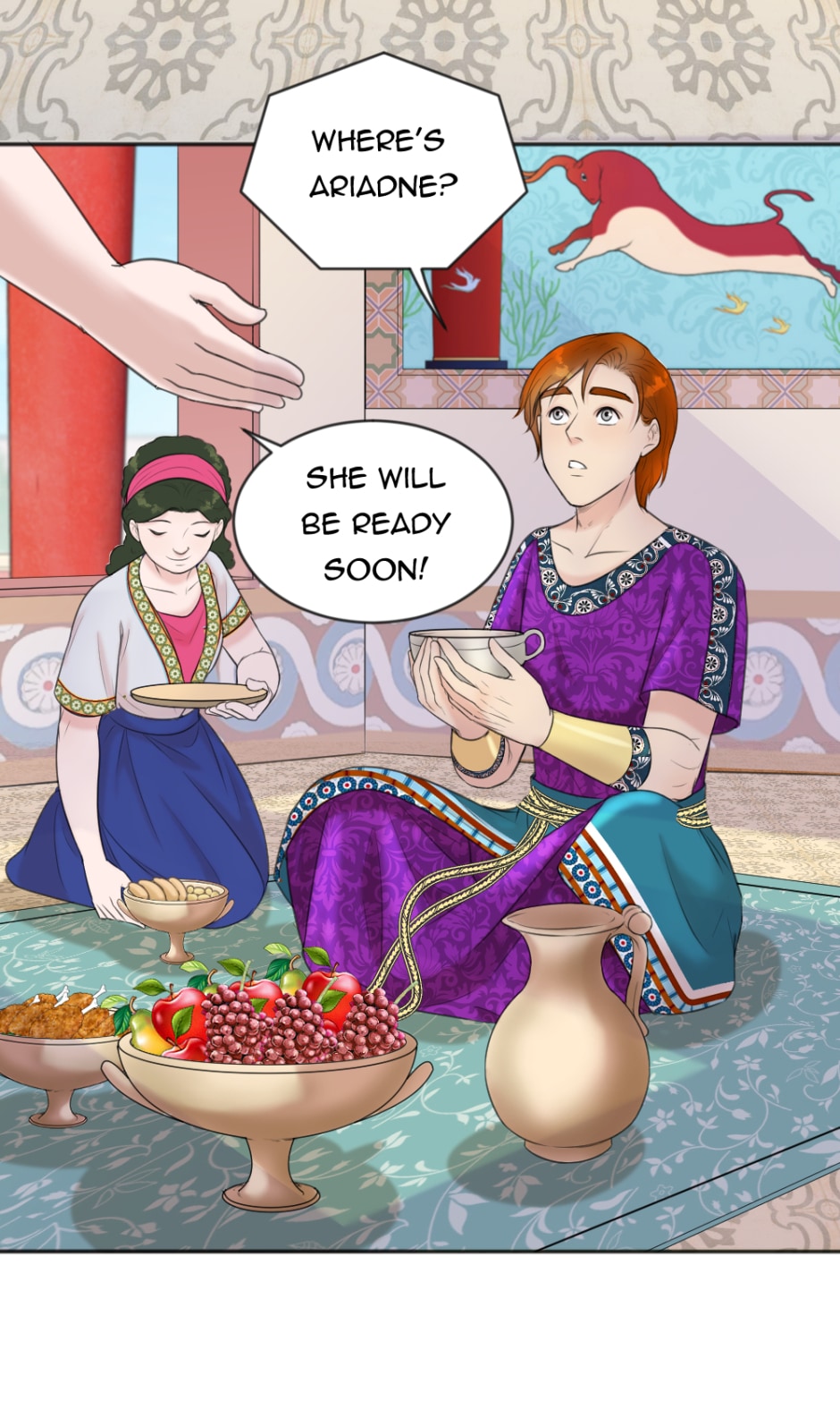 Dionysus- the young boy who grew up on a small island with no memory of his family and his constant strange nightmares and dreams. One day, Dionysus decided to go on a journey to find his family and discover who he really was, alongside the love of his life, Ariadne.