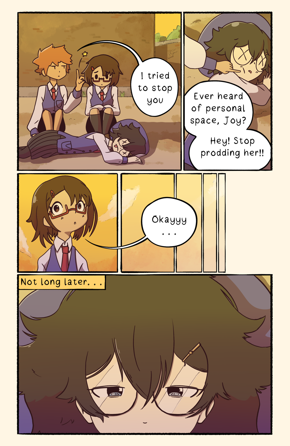 Millie is a second year in high-school now, and realises she had wasted her entire first year spending all her free time on her own! She finds it hard to make any friends or even talk to people at all, due to her social anxiety. However she finds some friends on her first day back, and is more hopeful than ever that her high-school life will be full of fun and happy memories!