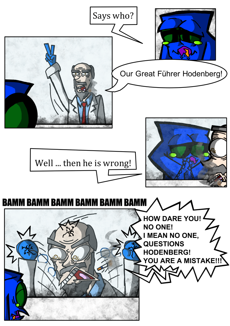 The comic is about Xck, a experiment and its family of other experiments, who are all living in a tower and worship Hodenberg. Till they start to question if Hodenberg and his regime are really that good and what lies outside of the tower.