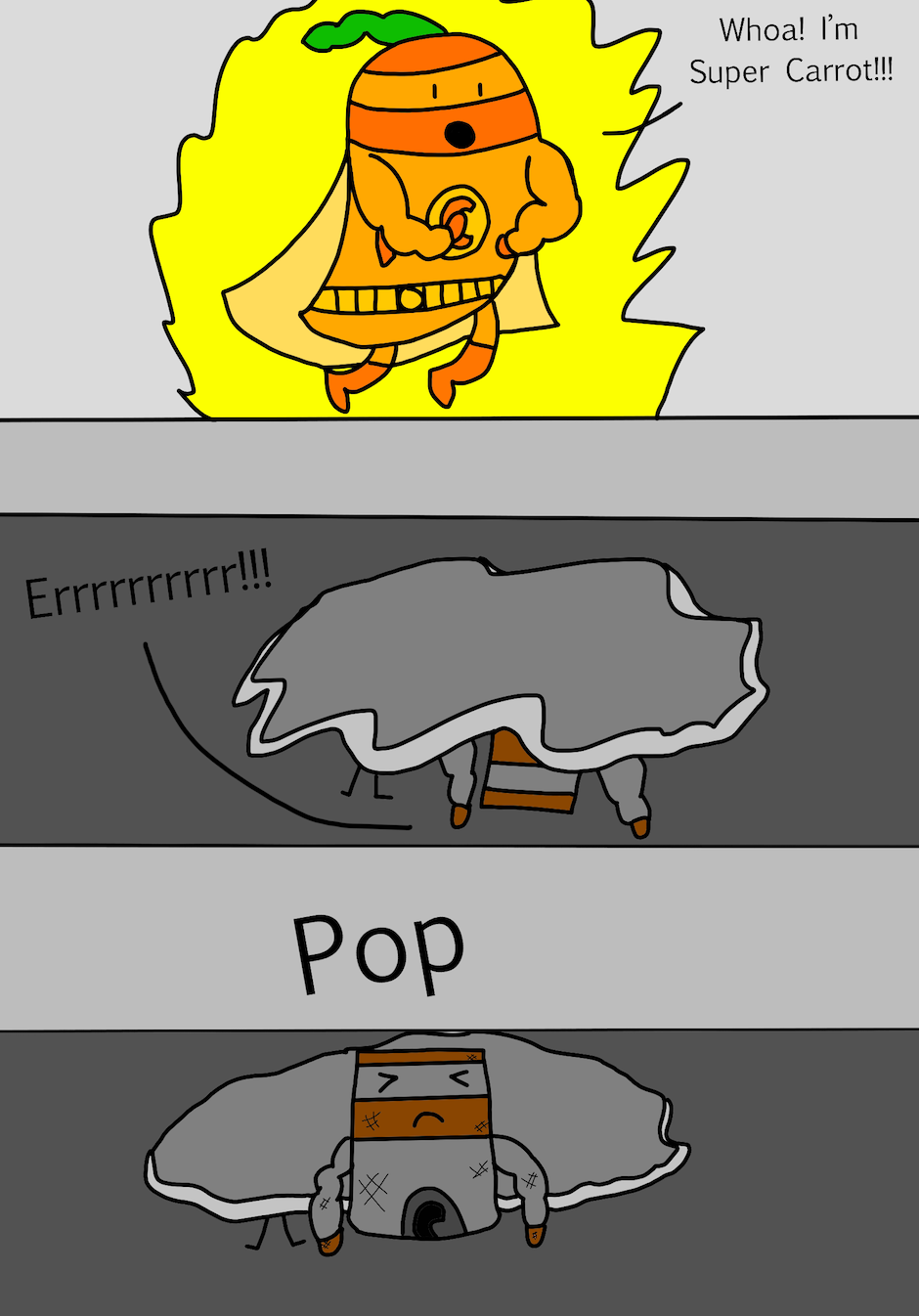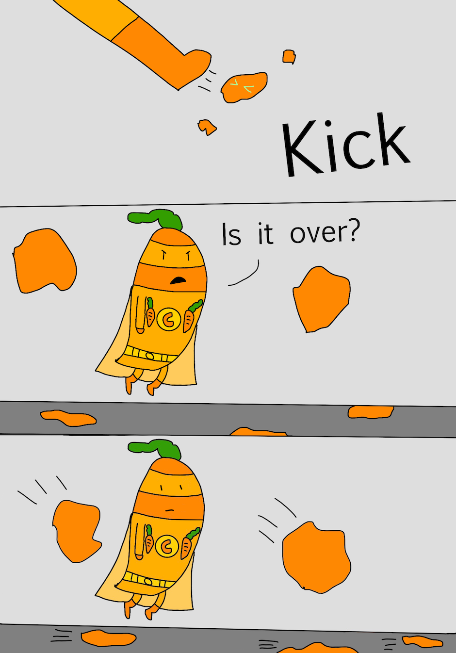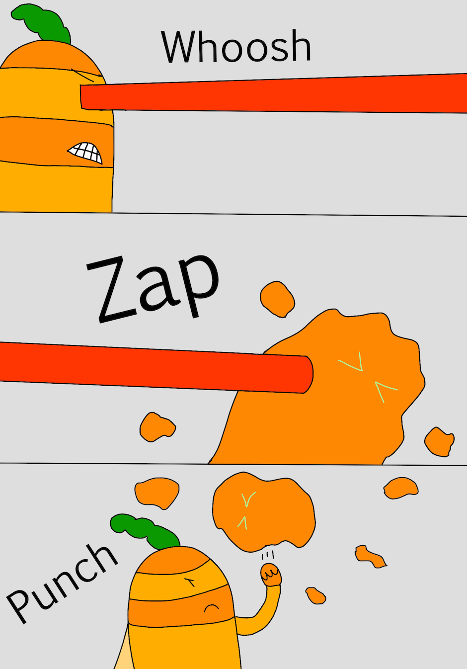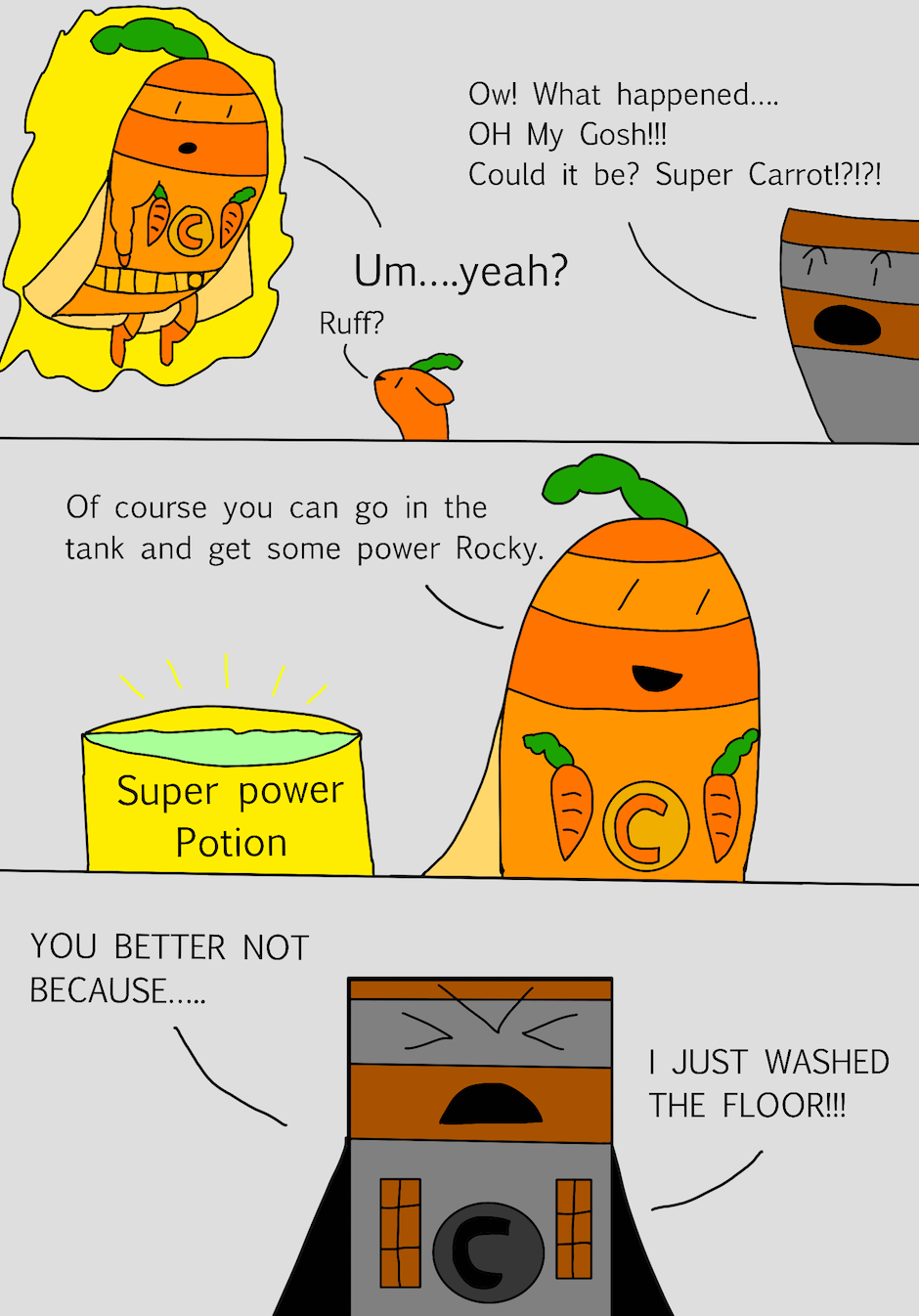 Hi, my name is Jane and I am 9 years old. This book is about a little carrot who became a hero. There was a villain who wanted to take over the world. The villain had two evil friends that helped him with his evil plan. It was up to the little carrot to safe the world. Can our hero little carrot beat the evil villain or will he lose?
