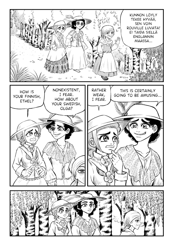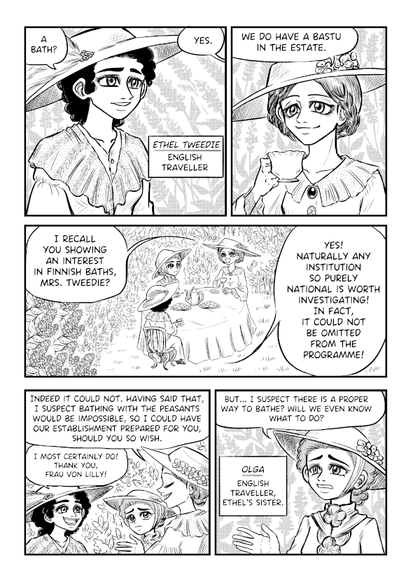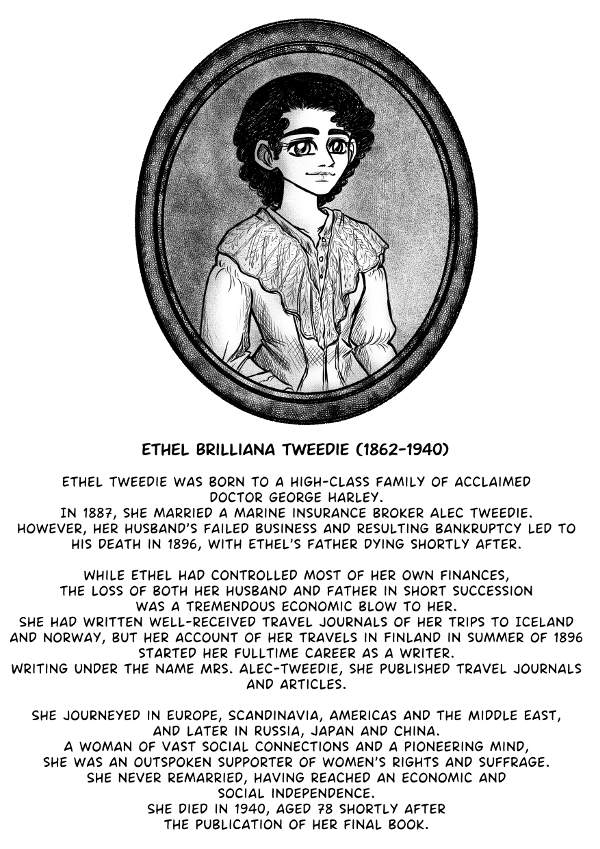 A comic based on an actual late 19th century travel journal to Finland by Ethel Brillian Tweedie (1862-1940).