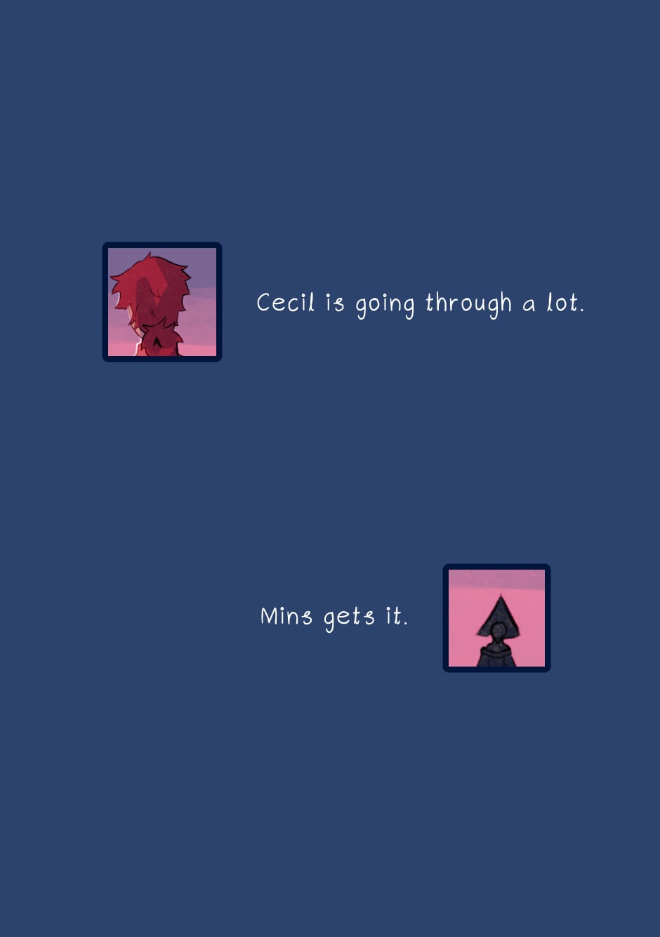 I love the quiet supportiveness of this interaction between Cecil and Mins!