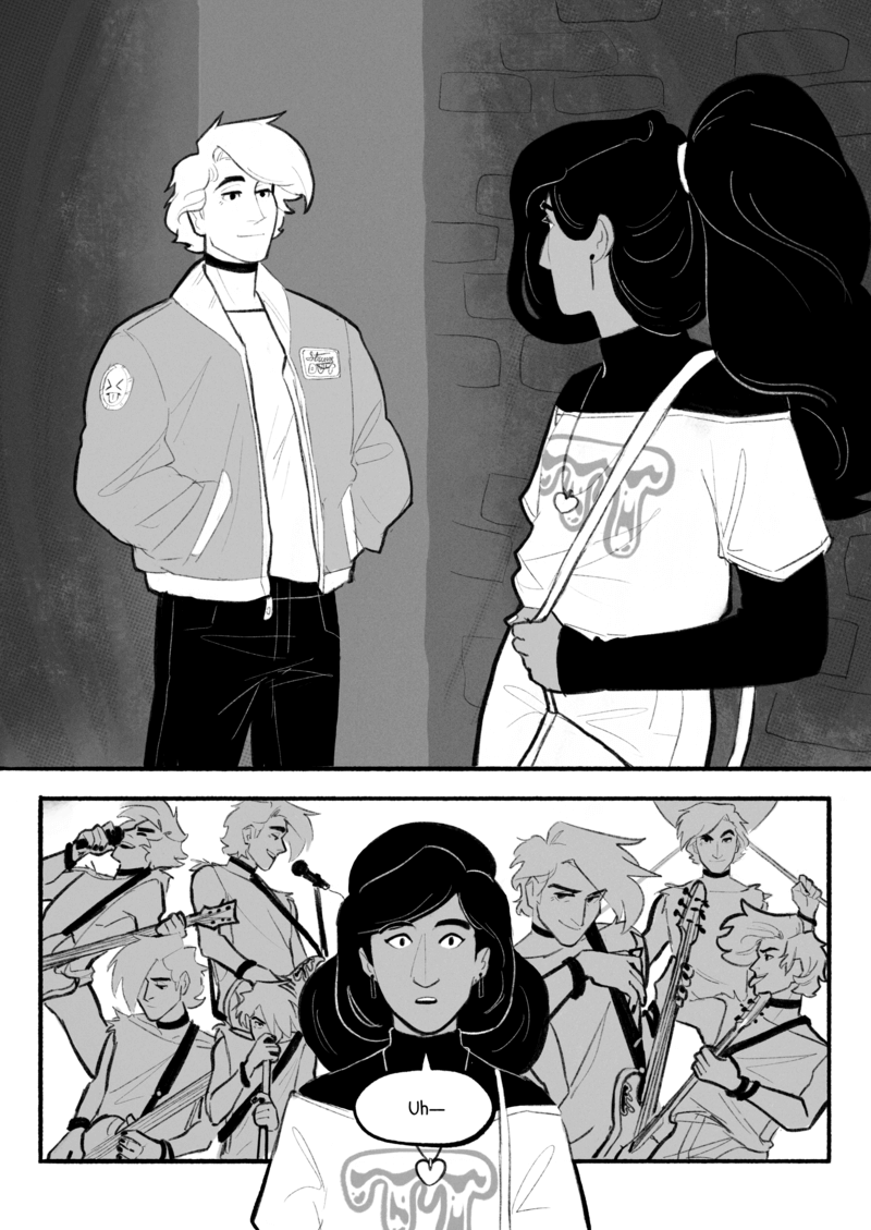 Haunted Heartache is a queer love story that faces the complexities of identity, belonging, and self-acceptance, set against the backdrop of supernatural rituals and pop-punk culture.