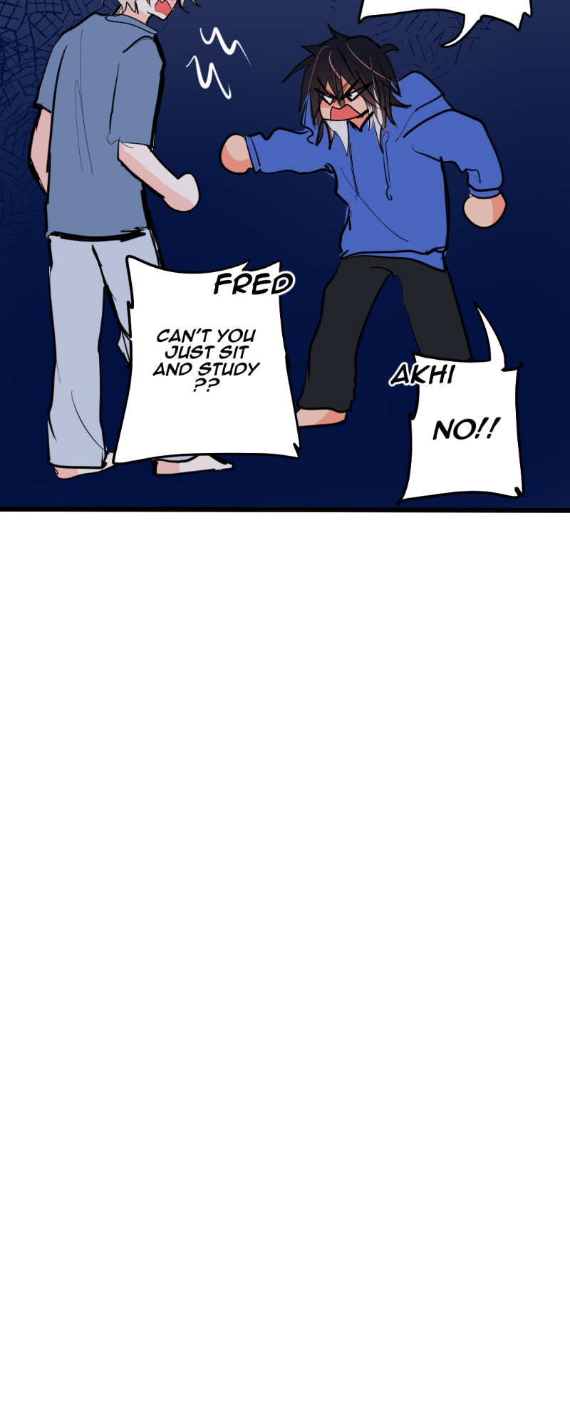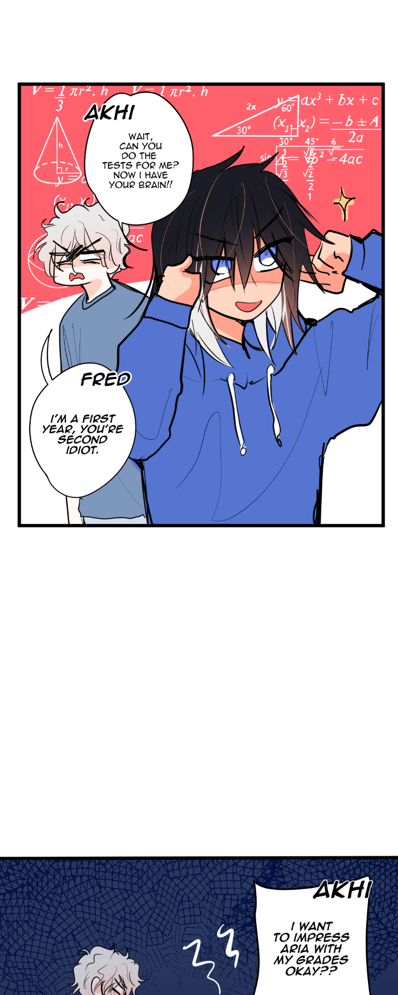 Fred has ice powers and it's the main characther of a superhero story (GELAZ*), Akhi has is a wind guardian and is the male lead of a romance (WIND OF THE NORTH), Davi has sand powers and is the prince of the desert kingdom (DAVI) - A comic where they and my other characters share the same space.