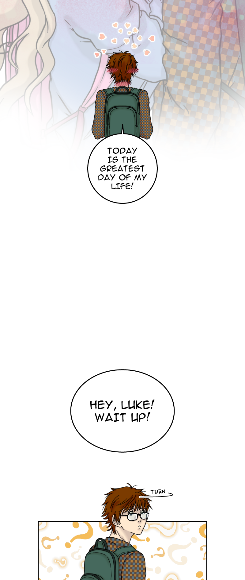 Growing up isn't easy and dealing with hormones and life-altering events isn't exactly a picnic either... But in a teenager's life, one of the most frightening moments ever is confessing to someone. What if you can't say the proper words? What if you get laughed at? What if you get harshly rejected? But you won't know unless you try. So join Luke and all of his friends as they try to survive their own confessions! [UPDATES EVERY FRIDAY ON WEBTOON!]