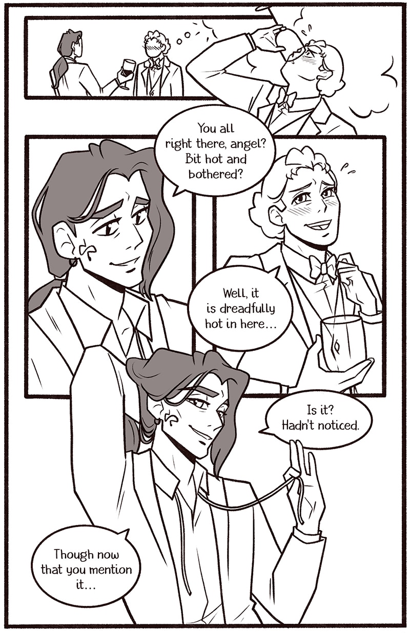Welcome to my newest Good Omens comic One Night in Bangor (And the World’s Your Oyster). The explicit fic is written by Atalan, which you can read here: https://archiveofourown.org/works/20053450?view_adult=true.